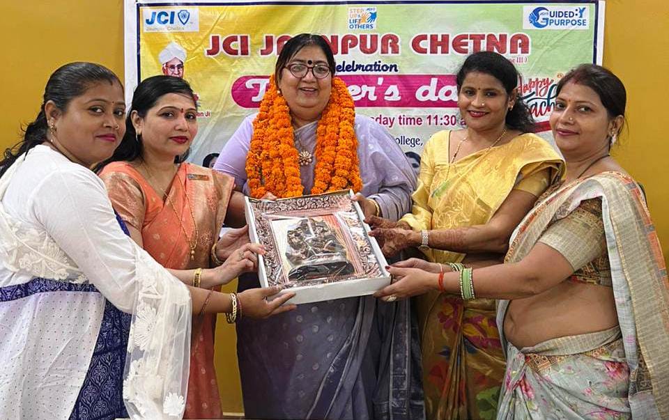 जौनपुर धारा, जौनपुर। जेसीआई चेतना द्वारा शिक्षक दिवस के अवसर पर संस्थाध्यक्ष सोनी जायसवाल के नेतृत्व में नगर के मध्य स्थित डॉ.रिजवी लर्नर्स स्कूल की प्रधानाचार्य डॉ.रुचि शर्मा को एवं मीना रिजवी गर्ल्स इण्टर कॉलेज की प्रधानाचार्य तहसीन फात्मा को शिक्षक दिवस के अवसर पर अंगवस्त्रम पहनाकर माल्यार्पण किया और केक काटते हुए स्मृति चिन्ह भेट किया, साथ में स्कूल की शिक्षिका सैम्युन निशा, मुक्ता, शाहाना, इशरत तथा जरीन मैडम को भी शिक्षक दिवस पर संस्था के पदाधिकारी के द्वारा सम्मानित किया गया। अध्यक्ष सोनी जायसवाल ने कहा कि किसी भी राष्ट्र के निर्माण में शिक्षक बहुत ही महत्वपूर्ण होते हैं। क्योंकि देश का भविष्य छात्र होता है और छात्र को उचित मार्गदर्शन शिक्षक ही करते हैं। डॉ.रुचि शर्मा ने जेसीआई चेतना संस्था को धन्यवाद करते हुए कहा कि बच्चों के साथ हम सभी को अपने गुरु का सम्मान हमेशा करना चाहिए। क्योंकि गुरु का अनुभव और उनका मार्गदर्शन आपको ऊंचाइयों तक ले जा सकता है, तहसीन फात्मा ने शिक्षक दिवस के अवसर पर कहा कि सभी बच्चों को अपने शिक्षक द्वारा बताए गए रास्ते पर चलना चाहिए, कार्यक्रम में कोषाध्यक्ष सरला महेश्वरी, ममता कश्यप, किरन जायसवाल, अंजना गुप्ता, निशा गुप्ता आदि सदस्य उपस्थित रहे। कार्यक्रम का संचालन कोषाध्यक्ष सरला महेश्वरी ने किया। सदस्यों के साथ सभी शिक्षक का आभार कार्यक्रम संयोजक किरन जायसवाल ने व्यक्त किया।
