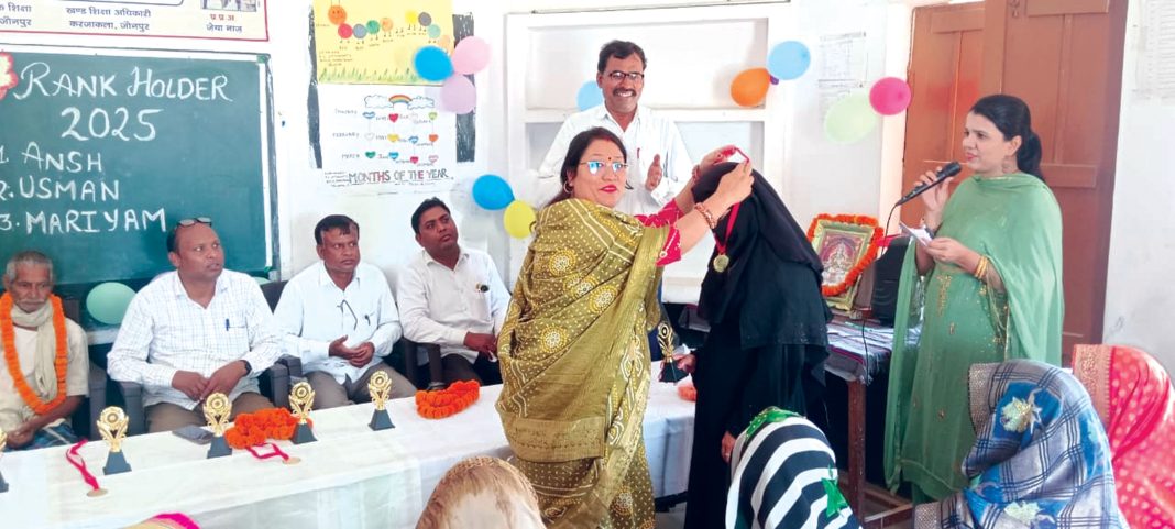 जौनपुर धारा,जौनपुर। विकासखण्ड करंजाकला के प्राथमिक विद्यालय उत्तरपट्टी में शारदा संगोष्ठी एवं वार्षिकोत्सव नामांकन मेला एवं अंक पत्र वितरण समारोह मनाया गया। जिसमें लोगों को शिक्षा के प्रति जागरूक किया गया। शिक्षा व्यवस्था को गुणवत्ता युक्त बनाने पर जोर दिया गया। उत्तरपट्टी के प्राथमिक विद्यालय पर आयोजित वार्षिकोत्सव में विभिन्न विद्यालयों के प्रधानाध्यापक, प्रभारी प्रधानाध्यापक, सहायक अध्यापक, अनुदेशक, शिक्षामित्र एवं भारी संख्या में छात्रों के माता-पिता अभिभावक ने भाग लेकर अपने-अपने सुझाव रखें। विद्यालय की प्रभारी प्रधानाध्यापिका ज़ेया नाज़ एवं राममिलन यादव सहायक अध्यापक द्वारा माल्यार्पण कर सभी लोगों का स्वागत अभिनंदन एवं वंदन किया गया। लोगों ने विद्यालय के नामांकन बढ़ाने एवं शिक्षा व्यवस्था में नई तकनीकियों का प्रयोग करने पर जोर दिया। कक्षा 5 के उत्तीर्ण छात्रों को अंक पत्र, ट्रॉफी व मेडल देकर सम्मानित किया। छात्र-छात्राओं ने सांस्कृतिक कार्यक्रम प्रस्तुत कर माहौल को खुशनुमा बना दिया। इस अवसर पर रमेश यादव, निरंजन यादव, वीरेंद्र यादव, शैलेंद्र यादव, गरिमा राय, राजेश यादव, मोहम्मद सलमान सहित आदि उपस्थित रहें। प्रभारी प्रधानाध्यापिका जेया नाज़ ने आभार एवं राममिलन यादव ने संचालन किया ।
