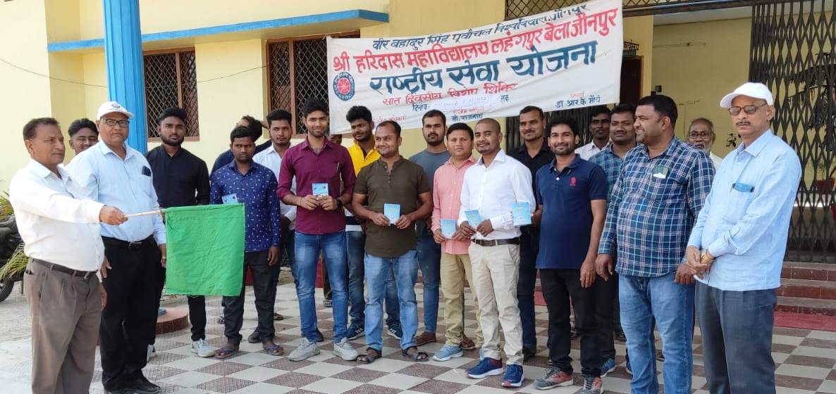 जौनपुर धारा, जौनपुर। श्री हरिदास पीजी कॉलेज लहंगपुर में राष्ट्रीय सेवा योजना के सात दिवसीय विशेष शिविर का शुभारंभ गुरुवार को हुआ। शिविर में मुख्य अतिथि पूर्व शाखा प्रबंधक राज बहादुर यादव ने सात दिवसीय विशेष शिविर में प्रतिभाग कर रहे शिविरार्थियो को आस-पास के गांव में लोगों को जागरूक करने के लिए हरी झंडी दिखाया। शिविर में एक गोष्ठी का आयोजन हुआ जिसमें यादव ने उत्साहवर्धन करते हुए कहा कि शिविर के माध्यम से छात्रों का चारित्रिक एवं सामाजिक विकास होता है जो राष्ट्र निर्माण में महती भूमिका साबित होती है। अध्यक्षता कर रहे महाविद्यालय के यशस्वी प्राचार्य डॉ. आरके मौर्य ने जन सेवा स्वावलंबन को रेखांकित करते हुए शिविरार्थियों को बताया कि राष्ट्रीय सेवा योजना के माध्यम से छात्र अपने जीवन को अनुशासित बनाकर राष्ट्र निर्माण में सार्थक कर सकते है। आगत अतिथियों का स्वागत एवं आभार ज्ञापन कार्यक्रम अधिकारी डॉ. सभाजीत यादव ने किया। इस अवसर पर समस्त प्राध्यापक, शिविरार्थी एवं क्षेत्रीय लोग उपस्थित रहे। संचालन प्यारे लाल यादव ने किया।