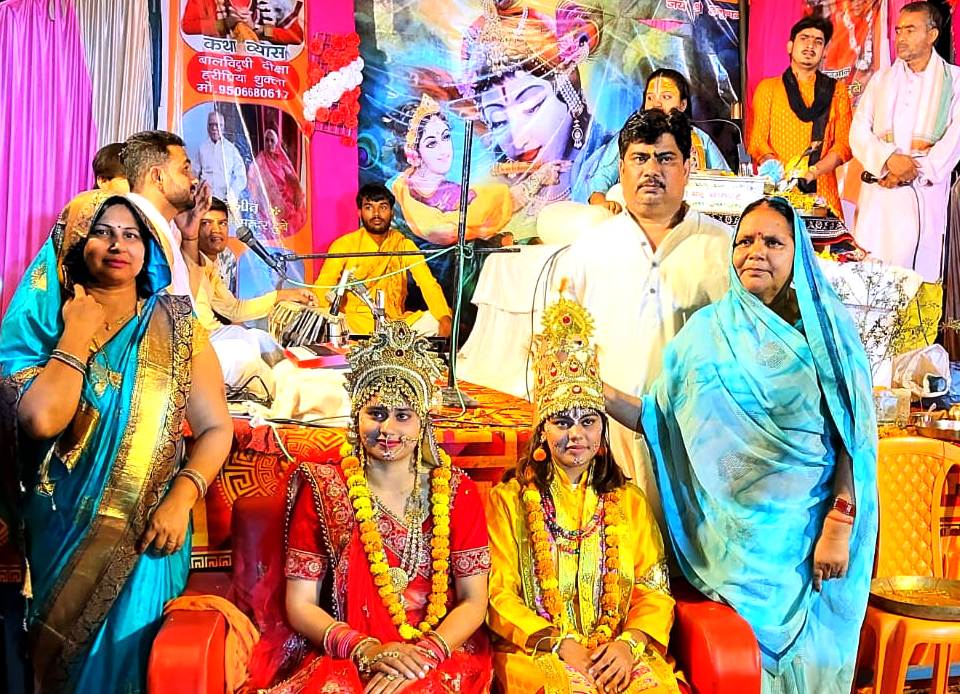 जौनपुर धारा, बदलापुर। विकासखण्ड के कुशहा द्वितीय गांव में चल रही श्रीमद्भागवत कथा के छठें दिन श्रीकृष्ण-रुक्मिणी विवाह प्रसंग की कथा हुई तथा विवाह की झांकी निकाली गई। गाजे-बाजे के साथ निकली बारात को देखकर श्रद्धालु झूम उठे। कथा का वाचन कर रही बालविदुषी दीक्षा हरिप्रिया शुक्ला ने कहा कि महारास में पांच अध्याय है। उनमें गाए जाने वाले पंच गीत भागवत के पंच प्राण हैं। जो भी ठाकुरजी के इन पांच गीतों को भाव से गाता है, वह भव पार हो जाता है। कथा में श्रीकृष्ण के मथुरा प्रस्थान, कंस का वध, महर्षि संदीपनी के आश्रम में विद्या ग्रहण करना, काल यवन का वध, उद्धव-गोपी संवाद, उद्धव द्वारा गोपियों को अपना गुरु बनाने के साथ ही श्रीकृष्ण रुक्मिणी विवाह प्रसंग का भावपूर्ण पाठ हुआ। कथा व्यास ने कहा कि महारास में भगवान श्रीकृष्ण ने बांसुरी बजाकर गोपियों का आह्वान किया था। महारास लीला से ही जीवात्मा और परमात्मा का मिलन हुआ। रुक्मिणी द्वारा श्रीकृष्ण को वरमाला पहनाए जाने पर जमकर फूलों की बरसात हुई।बालविदुषी दीक्षा हरिप्रिया शुक्ला ने कहा कि श्रीमद्भागवत कथा जीवन के सार तत्व को बताने वाली कथा है। इसका श्रवण करने से मोक्ष की प्राप्ति होती है। देर रात तक लोग कथा की भक्ति गंगा में गोता लगाते रहे।इस मौके पर ओम प्रकाश दुबे, श्यामसुन्दर दुबे, राधेश्याम दुबे, त्रिलोकीनाथ दुबे, भोलेनाथ दुबे सहित अन्य लोग मौजुद रहे।