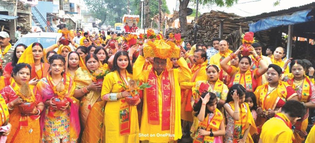 मुंगराबादशाहपुर। नगर में आयोजित सात दिवसीय श्रीमद्भागवत कथा ज्ञान यज्ञ के पूर्व रविवार को भव्य कलश यात्रा निकाली गई। कलश यात्रा के पहले श्रीधाम वृंदावन से पधारी कथाव्यास प्रज्ञा के सानिध्य में विधि विधान से वेदी पूजन किया गया।