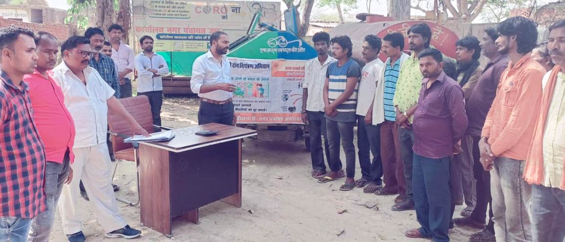 जौनपुर धारा, जौनपुर। नगर पंचायत कार्यालय जफराबाद में संचारी रोग नियंत्रण अभियान के संदर्भ में बुधवार को इओ कुंवर गौरव सिंह द्वारा कर्मचारियों के साथ बैठक की गई। बैठक में संचारी रोग के बचाव व लक्षण के बारे में जागरूक किया गया। नगर पंचायत कार्यालय में ईओ कुंवर गौरव सिंह की अध्यक्षता में संचारी रोग के नियंत्रण के लिए बैठक की गई। बैठक में उपस्थित कर्मचारियों को संचारी रोग से बचाव व उसके लक्षण के बारे में जागरूक किया गया। ईओ कुंवर गौरव सिंह ने कहा कि इन रोगों से बचने के लिए अपने आस पास पानी न जमा होने दें, मच्छरदानी का प्रयोग करें, फुल शर्ट पहने, पानी की टंकी को हमेशा ढ़ंककर रखें तथा कूलर के पानी को समय-समय पर बदलते रहे। इस दौरान लिपिक राजमन, वेद प्रकाश, ओमकार यादव, सत्येंद्र नारायण तिवारी, राकेश गुप्ता, विकास्ा मौर्या, सूरज, कमलेश कुमार आदि उपस्थित रहे।