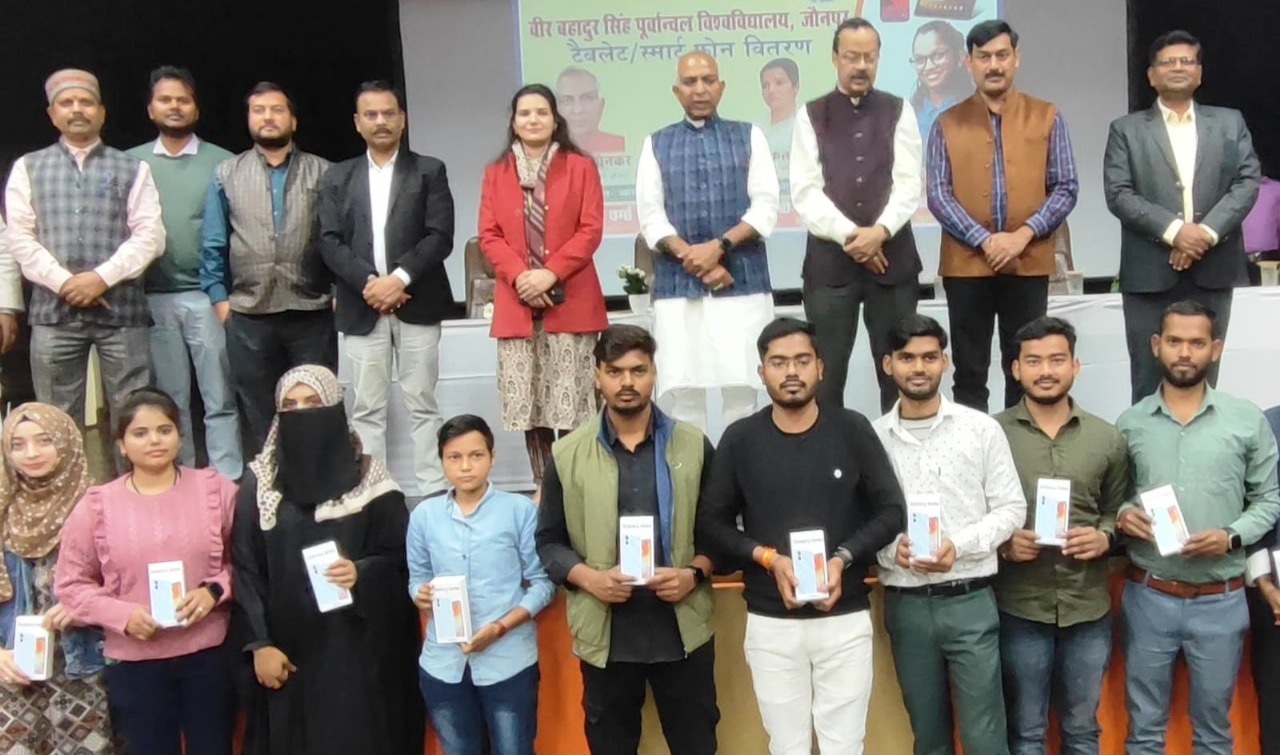 जौनपुर धारा, जौनपुर। वीरबहादुर सिंह पूर्वांचल विश्वविद्यालय परिसर के आर्यभट्ट सभागार में मंगलवार को 59 विद्यार्थियों को स्मार्टफोन का वितरण किया गया। वितरण समारोह के मुख्य अतिथि विधान परिषद के उपसभापति विद्यासागर सोनकर और विशिष्ट अतिथि उपजिलाधिकारी प्रज्ञाक्ता त्रिपाठी थीं। इस अवसर पर विधान परिषद के उपसभापति विद्यासागर सोनकर ने कहा कि डिजीटल युग में विद्यार्थी स्मार्टफोन का प्रयोग सकारात्मक ज्ञान के लिए करें। उन्होंने कहा कि शिक्षण संस्थान के विद्यार्थी शिक्षा के साथ-साथ संस्कार को भी अपने जीवन में अपनाएं। उन्होंने त्रेता और द्वापर का उदाहरण देते हुए कहा कि अहम और वहम त्यागकर हमेशा बढ़ों से सीख लेने की जरूरत हैं। उन्होंने कहा कि मानव जीवन में अध्यात्म की भी बहुत आवश्यकता है। प्रधानमंत्री नरेंद्र मोदी ने देश ही नहीं विदेशों में भी अध्यात्म की पताका फहराई है, साथ ही इसे पर्यटन से जोड़कर देश की अर्थव्यवस्था को मजबूती दी है। इस अवसर पर दोनों अतिथियों ने स्मार्टफोन पाने वाले विद्यार्थियों का परिचय भी जाना। कुलसचिव महेंद्र कुमार, परीक्षा नियंत्रक अजीत सिंह, प्रो.मानस पाण्डेय, प्रो.वीडी शर्मा, प्रो.अजय द्विवेदी, प्रो.देवराज सिंह, प्रो.रजनीश भास्कर, डॉ.प्रमोद यादव, डॉ.संतोष कुमार, डॉ.मनोज मिश्र, डॉ.आशुतोष सिंह, डॉ.सुनील कुमार, डॉ.धीरेंद्र चौधरी, डॉ.सुजीत कुमार, डॉ.अमित वत्स, डॉ.श्याम कन्हैया, डॉ.पुनीत धवन आदि ने भाग लिया।