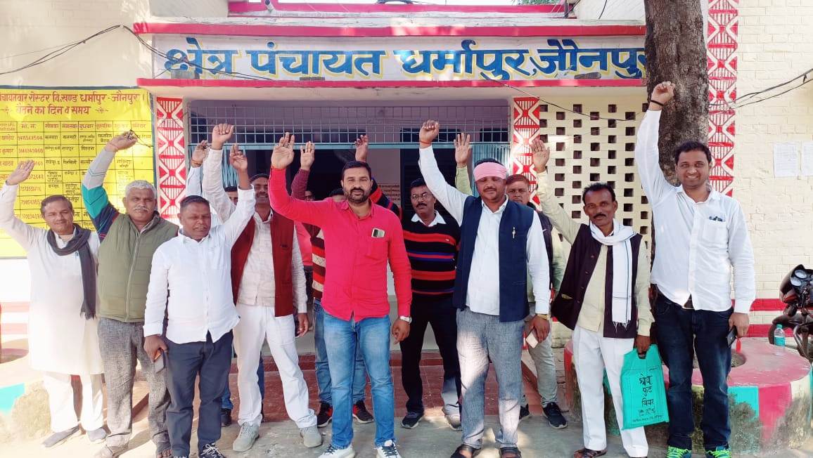 जौनपुर धारा, जौनपुर। धमार्पुर ब्लॉक के ग्राम पंचायत रामपुर जमीम हिसामपुर, धर्मापुर, सरैयां, उत्तरगावां, विथार, खलसहा, चौकीपुर, राजेपुर द्वितीय व केशवपुर सहित दस ग्राम पंचायतों में सचिव की नियुक्ति न होने से उक्त गावों में विकास कार्य बाधित पड़ा हुआ है। लगभग एक महीने से सचिव की नियुक्ति का इंतेजार कर रहे ग्राम प्रधानों का गुस्सा आखिरकार सोमवार को फूट पड़ा। प्रधान संघ के ब्लॉक अध्यक्ष नरेंद्र यादव के नेतृत्व में ग्राम प्रधानों ने ब्लॉक पर प्रदर्शन कर अपना विरोध जताया। ग्राम प्रधानों का कहना है कि क्लस्टर का हवाला देते हुए पूर्व के नियुक्त सचिवों की आईडी बंद कर दी गई है और इन ग्राम पंचायतों में अभी तक किसी नए सचिव को नियुक्त नहीं किया जा रहा है जिससे ग्राम पंचायतों में होने वाले विकास कार्य बाधित है। मनरेगा के कार्य नही हो पा रहा है। प्रधानों ने कहा कि एक सप्ताह में नए सचिवों की नियुक्ति न होने पर वह इस समस्या को सीडीओ से मिलकर अवगत कराएंगे। इस मामले में पूछे जाने पर बीडीओ धमार्पुर काशी नाथ सोनकर ने बताया कि उक्त समस्या को उच्च अधिकारियों को पूर्व में ही अवगत कराया गया है। जहां से सचिव के जल्द नियुक्ति का आश्वासन प्राप्त हुआ है। इस दौरान प्रदर्शन करने वालों में प्रधान संघ के ब्लॉक अध्यक्ष नरेंद्र यादव, ग्राम प्रधान धर्मापुर जयहिंद यादव, उमानाथ यादव, अंगनु प्रसाद, नीरज कुमार यादव व शीतला प्रसाद आदि मौजूद रहे।