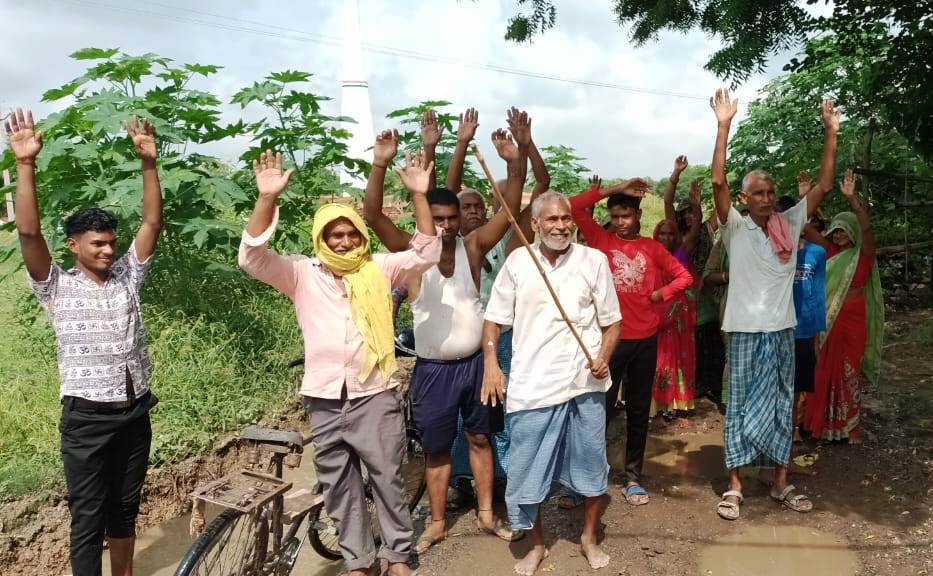 सड़क के गड्ढे को लेकर ग्रामीणों ने किया प्रदर्शन