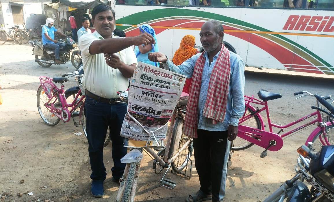 जौनपुर धारा, जौनपुर। लगभग 42वर्षों से समाचार पत्र विक्रेता का काम कर रहे रामपुर खुर्द निवासी बंशराज को प्राथमिक विद्यालय के अध्यापक ने नई साइकिल गिफ्ट की है। जिसकी चर्चा लोग कर रहे है। मीरगंज क्षेत्र के रामपुर खुर्द निवासी बंशराज पिछले 42वर्षो विभिन्न समाचार पत्रो के वितरण का काम करते है। वह बंधवा बाजार मे अखबार की सप्लाई करते हुए 4 थाना क्षेत्र मछलीशहर, मीरगंज, पंवारा बरसठी, ग्रामीण क्षेत्र मे लगभग 136किलोमीटर तक की दूरी रोजाना पूरानी साइकिल से करते है। उनकी पूरानी साइकिल देखकर तिलौरा निवासी प्राथमिक विद्यालय गोधना के अध्यापक विजय सिंह यादव ने उन्हे नई साइकिल गिफ्ट की है। विजय का कहना है की बंशराज कई वर्षों से उसी पुरानी साइकिल से अखबार वितरण कर रहे थे जो अक्सर रोजाना विगडी रहती थी वह परेशान रहते थे जिसे देखकर मेरे मन मे आया की उन्हे साइकिल गिफ्ट दी जाय और मैने उन्हे साइकिल गिफ्ट की है मै और लोगो से आह्वान करुगा की ऐसे अन्य समाचार पत्र विक्रेता जो रोजाना ठंडी गर्मी बरसात मे अखबार का वितरण का काम करते है उन्हे साइकिल वितरण करे। वही साइकिल पाकर समाचार पत्र विक्रेता बंशराज खुश दिखे और उन्होंने विजय का धन्यवाद दिया। विजय सिंह के इस कार्य की बंधवा बाजार सहित आसपास क्षेत्र मे चर्चा हो रही है।