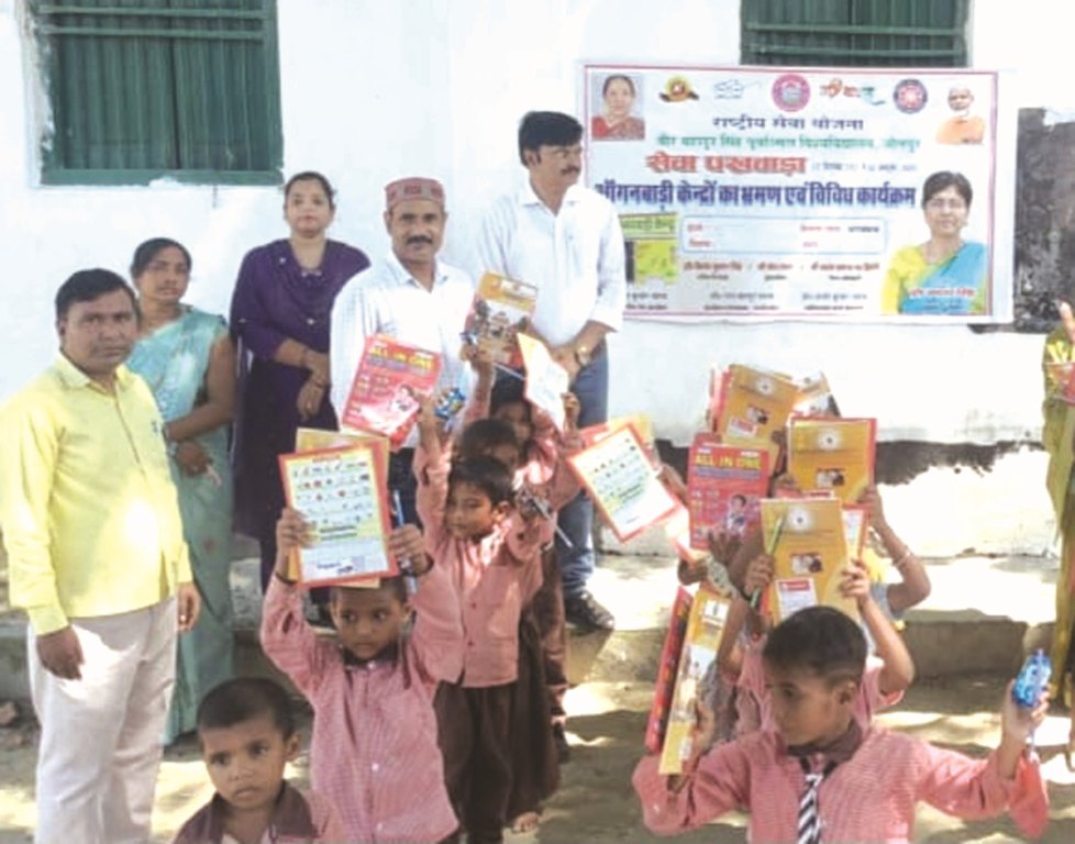जौनपुर। वीर बहादुर सिंह पूर्वांचल विश्वविद्यालय की कुलाधिपति आनंदीबेन पटेल के निर्देश पर एवं कुलपति प्रो.वन्दना सिंह के संरक्षकत्व में सेवा पखवाड़ा के अंतर्गत विश्वविद्यालय के एनएसएस प्रकोष्ठ द्वारा आंगनबाड़ी केंद्र, सुल्तानपुर, करंजाकला का भ्रमण एवं विविध कार्यक्रमों का आयोजन किया गया। इस अवसर पर आंगनबाड़ी केंद्र में बच्चों को कॉपी, कलम किताब, पेंसिल, बिस्कुट, टाफी आदि शिक्षण एवं खाद्य सामग्री वितरित की गई, साथ ही साथ जागरूकता कार्यक्रम भी आयोजित किया गया। पोषण, स्वच्छता, स्वास्थ्य एवं शिक्षा से संबंधित उपयोगी जानकारियां प्रदान की गईं। बच्चों को पौष्टिक आहार एवं स्वच्छता के महत्व के बारे में बताया गया। कार्यक्रम संयोजक डॉ.राज बहादुर यादव ने कहा कि सेवा पखवाड़ा समाज में सकारात्मक बदलाव का माध्यम है और इस प्रकार के कार्यक्रमों से जमीनी स्तर पर जनजागरूकता बढ़ती है। गाँव गोद कार्यक्रम के समन्वयक प्रो. राकेश कुमार यादव ने अपने उद्बोधन में ग्राम विकास में विश्वविद्यालय की भूमिका को रेखांकित करते हुए कहा कि समाज और शैक्षणिक संस्थानों का आपसी सहयोग ही प्रगति का आधार है। कार्यक्रम में उपस्थित ग्रामवासियों एवं बच्चों ने उत्साहपूर्वक भागीदारी की और सेवा पखवाड़े को सफल बनाने का संकल्प लिया। इस अवसर पर आंगनबाड़ी कार्यकत्री मंजू देवी, सहायक अध्यापिका ज़ीनत शमीम,बबीता यादव, अनीता यादव, संतोष कुमार एवं समाजसेवी सर्वेश, संदीप आदि उपस्थिति रही।