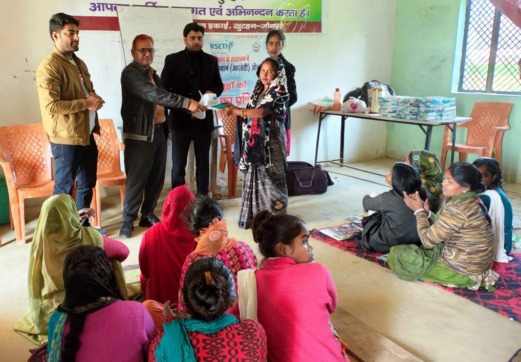 जौनपुर धारा,खुटहन। रविवार को ग्राम पंचायत पूरा अंधरी में यूनियन बैंक आरसीटी जौनपुर के सहयोग से समूह की महिलाओं को अगरबत्ती, धूपबत्ती आदि बनाने का प्रशिक्षण परिवर्तन प्रेरणा संकुल स्तरीय संघ क्लस्टर मुबारक विकासखण्ड खुटहन पर दिया जा रहा है। कार्यक्रम में अमर बहादुर यादव सहायक विकास अधिकारी आईएसबी एवं ऋषि कृष्णा मिश्रा ब्लॉक मिशन प्रबंधक द्वारा महिलाओं को टोपी एवं एप्रन देकर सम्मानित किया गया प्रशिक्षण में श्रवण कुमार मौर्य अजय गुप्ता अवनीश चंद्र समूह की दीदियॉ लक्ष्मी, रुबी, सुशीला, गीता, साधना, अनीता, प्रियंका नाविक, संगीता, नेहा जायसवाल, सुषमा, माधुरी संजू नाविक, कंचन निषाद, आरती रंजना सहित आदि मौजूद रहीं।