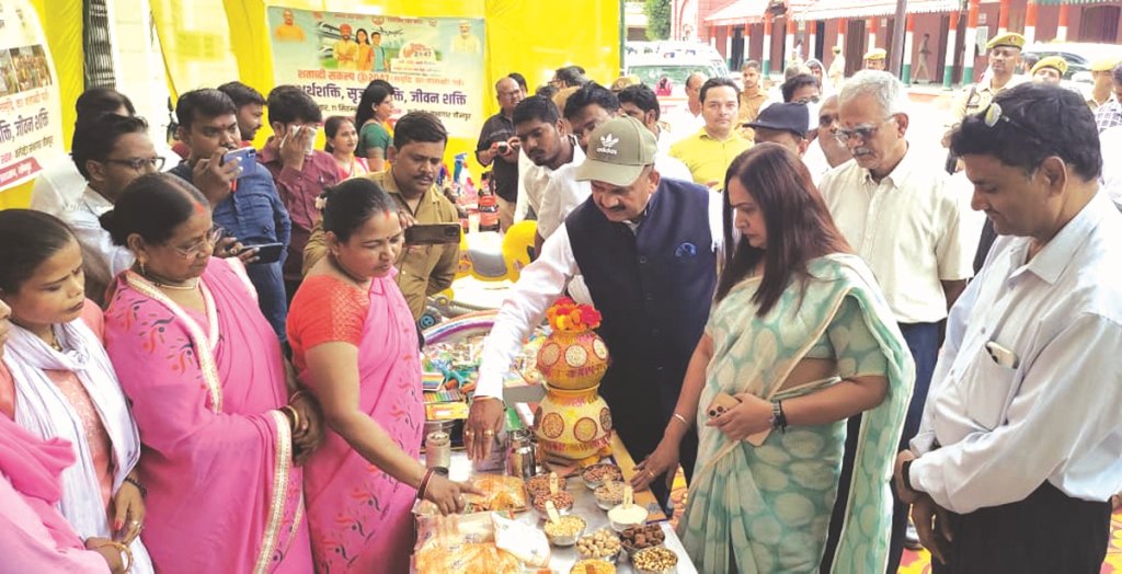 जौनपुर। शताब्दी संकल्प 2047 विकसित भारत के अन्तर्गत समर्थ विकसित उत्तर प्रदेश की परिकल्पना के संदर्भ में शासन द्वारा नामित नोडल अधिकारी सेवानिवृत्त आईपीएस राजकुमार विश्वकर्मा, सेवानिवृत्त आईपीएस प्रमोद कुमार, सचिव मानवाधिकार आयोग धनलक्ष्मी, सेवानिवृत प्रोफेसर पूर्वांचल विश्वविद्यालय धरनीधर दुबे, वरिष्ठ वैज्ञानिक डॉ.सुरेश कन्नौजिया, सहित जिलाधिकारी डॉ.दिनेश चंद्र, पुलिस अधीक्षक डॉ.कौस्तुभ, मुख्य विकास अधिकारी ध्रुव खाडिया, मुख्य राजस्व अधिकारी अजय अंबष्ट सहित अन्य द्वारा कलेक्ट्रेट परिसर में बाल विकास एवं पुष्टाहार विभाग तथा समूह की महिलाओं द्वारा लगाए गए। प्रदर्शनी का फीता काट कर उद्घाटन किया गया तथा विभागों द्वारा लगाए गए स्टॉल का अवलोकन किया गया। इसके उपरान्त कलेक्ट्रेट सभागार में नोडल अधिकारीगण द्वारा मां सरस्वती के चित्र पर माल्यार्पण करते हुए दीप प्रज्जवलित किया गया। अधिकारियों द्वारा स्वयं सहायता समूह की महिलाओं द्वारा स्वनिर्मित बुके देकर स्वागत किया गया एवं अतिथिगण को समूह द्वारा उत्पादित सामग्रियों की टोकरी महिलाओं द्वारा भेट किया गया। नोडल अधिकारियों द्वारा विकसित भारत ञ्च2047 के दृष्टिगत स्वयं सहायता समूहों की महिलाओं के साथ भविष्य की योजनाओं व विकसित भारत संकल्प के पहलुओं पर भी विचार विमर्श किया गया। नोडल अधिकारीगण द्वारा स्वयं सहायता समूह की महिलाओं से मेरी जुबानी मेरी कहानी के बारे में जानकारी ली गयी। जिसमें विद्युत सखी सुनिता निषाद, बैंक सखी पुष्पा मौर्य, वीओ अध्यक्ष जाफरून निशा, एफ.एल.सी.आर.पी. शिवांगी पाल व अन्य महिलाओं द्वारा मेरी जुबानी मेरी कहानी के माध्यम से अपनी सफलता के बारे में बताया गया। नोडल अधिकारी राजकुमार विश्वकर्मा ने कहा कि स्वयं सहायता समूह की महिलाओं को अन्य विभाग के समन्वय करते हुए समय समय पर प्रशिक्षित किया जाए, उनके उत्पादों को ऑनलाइन प्लेटफॉर्म पर भी प्रचारित प्रसारित किया जाए। उन्होंने कहा कि आपका कार्य निश्चय ही सराहनीय है। उन्होंने अपने अनुभव को साझा करते हुए कहा कि आपके प्रयास को आधुनिकरण करने की आवश्यकता है। जिलाधिकारी ने कहा कि कोई भी देश-प्रदेश तभी समर्थ होगा, जब वहां की मातृशक्ति सशक्त होगी। उपायुक्त एनआरएलएम द्वारा पीपीटी के माध्यम से राष्ट्रीय ग्रामीण आजीविका मिशन की योजनाओं, प्रोसेसिंग इकाइयों, उपलब्धियों आदि के संबंध में जानकारी दी गई। जिलाधिकारी द्वारा अवगत कराया गया कि हर घर तिरंगा अभियान के अंतर्गत स्वयं सहायता समूह की महिलाओं के द्वारा तिरंगे बनाए गए, इसके साथ ही समूह की महिलाओं द्वारा तेल, शहद, दीया सहित 200 से अधिक प्रकार के उत्पाद बनाए जाते हैं। नोडल अधिकारीगण ने प्रेरणा कैंटीन के 