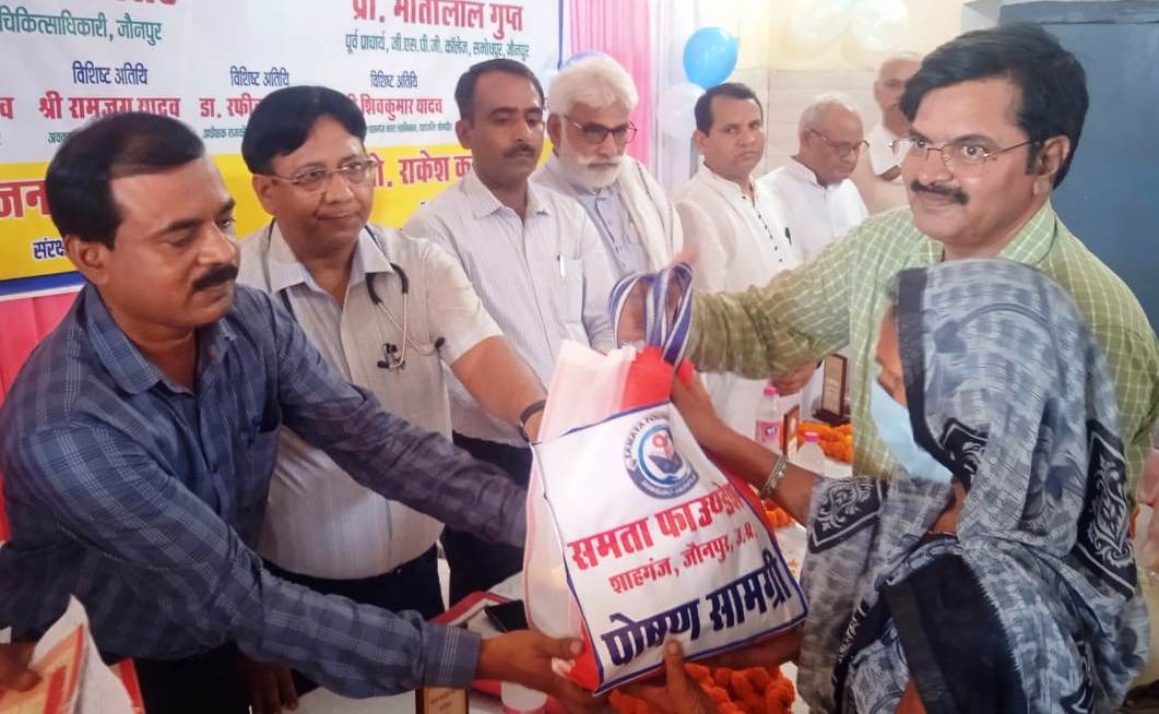 जौनपुर धारा, जौनपुर। समता फाउण्डेशन द्वारा प्रधानमंत्री टीबी मुक्त भारत अभियान के अंतर्गत गोद लिए गए क्षय रोगियों को पोषण सामग्री वितरण कार्यक्रम शाहगंज के राजकीय पुरुष अस्पताल में आयोजित किया गया। कार्यक्रम में कुल 24क्षय रोगियों को पोषण सामग्री का वितरण किया। मंचासीन अतिथियों  का माल्यार्पण एवं स्मृति चिन्ह भेंट करके स्वागत किया गया। कार्यक्रम का शुभारंभ बाबा द्वारिका दास हरि महाविद्यालय, एसएस कॉलेज आफ फार्मेसी, जहांगीर पट्टी एवं धन्वंतरी हॉस्पिटल गाजियाबाद के निदेशक डा.सूर्यभान यादव मुख्य अतिथि के रूप में पोषण सामग्री वितरित किया। उन्होंने अपने सम्बोधन में कहा कि समता फाउण्डेशन नर सेवा नारायण सेवा की भूमिका निभा रहा है। भारत ही नहीं बल्कि पूरे विश्व में टीबी रोग अपना पांव पसार चुका है, इससे निपटना अत्यंत चुनौती पूर्ण कार्य है। उन्होंने कहा कि गरीबों, जरूरतमंदों, असहायों, पीड़ितों और असाध्य रोगियों की सेवा करना ईश्वर की सेवा के बराबर है। मानवता के उत्थान के लिए फाउण्डेशन द्वारा किए जा रहे नेक कार्यों की उन्होंने जमकर सराहना की। अपने वक्तव्य में कहा कि गरीबों और असहायों के हृदय में ईश्वर बसते हैं। इसलिए इनकी नि:स्वार्थ भाव से सेवा करनी चाहिए। उन्होंने कहा यह परोपकार का कार्य है जो सबसे बड़ा पुनीत कार्य है। मानवता की सच्ची सेवा ही ईश्वर की सबसे बड़ी सेवा है। उन्होंने परोपकार को मनुष्य का दिव्य और ईश्वरीय गुण बताया। विशिष्ट अतिथि तथा सीएचसी अधीक्षक डा.रफीक फारुकी ने टीबी मुक्ति पूरे देश के लिए चुनौती का विषय बताया। टीबी जीवाणु जनित और जानलेवा बीमारी है जो साधारण दवा से ठीक नहीं हो सकती। उन्होंने कहा कि 15 दिन से लगातार खांसी आ रही हो तो इसके लिए नजदीकी अस्पताल से जांच कराकर इलाज करायें। उन्होंने बताया कि 390 में से 250 टीबी केस सत्यापित किया जा चुके हैं। फाउण्डेशन द्वारा किए जा रहे उत्कृष्ट कार्यो की भूरि-भूरि प्रसंशा की। विशिष्ट अतिथि के रूप में बोलते हुए रामजग यादव ने बताया कि दूसरों की भलाई करना सबसे बड़ा धर्म तथा दूसरों को पीड़ा पहुंचाना सबसे बड़ा पाप है। कार्यक्रम की अध्यक्षता कर रहे गांधी स्मारक पीजी कॉलेज समोधपुर, जौनपुर के पूर्व प्राचार्य प्रो.मोतीलाल गुप्त ने कहा कि मानव जीवन के लिए स्वास्थ्य सबसे महत्वपूर्ण घटक है। शारीरिक और मानसिक रूप से स्वस्थ होना  जीवन का सबसे बड़ा धन है। समाज के दुख दर्द में बढ़ चढ़कर सहभागिता के लिए बधाई दी। विशिष्ट अतिथि जिला कार्यक्रम समन्वयक सलिल कुमार यादव ने कहा कि 2025तक पूरे देश को टीबी मुक्त करना सरकार का लक्ष्य है। टीवी से ग्रस्त रोगियों के संपर्क में आने से 90ज्ञ् खतरा सामान्य लोगों की अपेक्षा अधिक होता है। जिला पंच