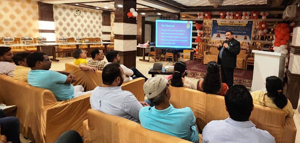 जौनपुर धारा, जौनपुर। मानवसेवा को समर्पित विश्व की ख्यातिलब्ध संस्था रोटरी क्लब अन्तर्राष्ट्रीय की जौनपुर इकाई ने संस्था द्वारा किस प्रकार से सहचर्य की भावना को आगे रखते हुए समाजसेवा की जा सकती है विषय पर संस्था ट्रेनर डॉ.क्षितिज शर्मा ने टी.डी.कालेज रोड स्थित सभागार में एक प्रशिक्षण कार्यशाला का आयोजन किया। कार्यशाला में एमपीएचएफ डॉ.क्षितिज शर्मा ने उपस्थित संस्था सदस्यो को सर्वप्रथम संस्था की मूल भावना स्वयं से बढ़कर मानव सेवा के बारे में बताया उन्होंने कहा कि संस्था का उद्देश्य सहचर्य की भावना को बढ़ाते हुए समाज की सेवा करना है। हम सबको यह समझना जरूरी है कि संस्था किसी के व्यक्तिगत हित के साधन का माध्यम नही है अपितु समाजिक हित मे कार्य करने का अतुल्य साधन है। स्वयं से आगे बढ़कर जब हम समाज के लिए सोचना शुरू करेंगे तब हम एक सार्थकता का अनुभव करेंगे। उन्होंने संस्था द्वारा अंतराष्ट्रीय स्तर पर शांति, स्वच्छ जल व शिक्षा के क्षेत्र में क्या-क्या कार्य कर रहा है। इस पर विस्तृत जानकारी दी, इसी क्रम में उन्होंने बताया कि संस्था को सदैव ऐसे कार्यक्रमों पर ध्यान देना होगा जो टिकाऊ हो न कि सिर्फ कुछ दिनों के लिए हो उदाहरण के लिए पार्क का निर्माण या रामघाट पर शेड का निर्माण भी इसी के अंतर्गत आता है। संस्था अध्यक्ष रोटेरियन सूजीत अग्रहरि ने बताया कि संस्था में सदैव एक दूसरे का हौंसला बढ़ाते हुए समाज कल्याण से सम्बंधित कार्य किये जाने चाहिए सहचर्य किसी भी संस्था की मूल आत्मा है। सहचर्य से ही सेवाभावना का उद्भव होता है। इस अवसर पर उन्होंने संस्था में संदीप सेठ जो कि पेशे से स्वर्ण व्यवसायी है उन्हें संस्था सदस्यता की शपथ दिलवाई कार्यक्रम निदेशक पीएचएफ़ मनीष चंद्रा ने अतिथियों का स्वागत व अभिनन्दन किया व अंत मे सचिव विवेक सेठी ने उपस्थित सदस्यों व प्रशिक्षक के प्रति आभार व्यक्त किया। इस अवसर पर श्याम बहादुर सिंह, अनिल गुप्ता, मनीष गुप्ता, संजय जायसवाल, आशीष गुप्ता, प्रदीप सिंह, कृष्ण कुमार मिश्र इत्यादि उपस्थित रहे।