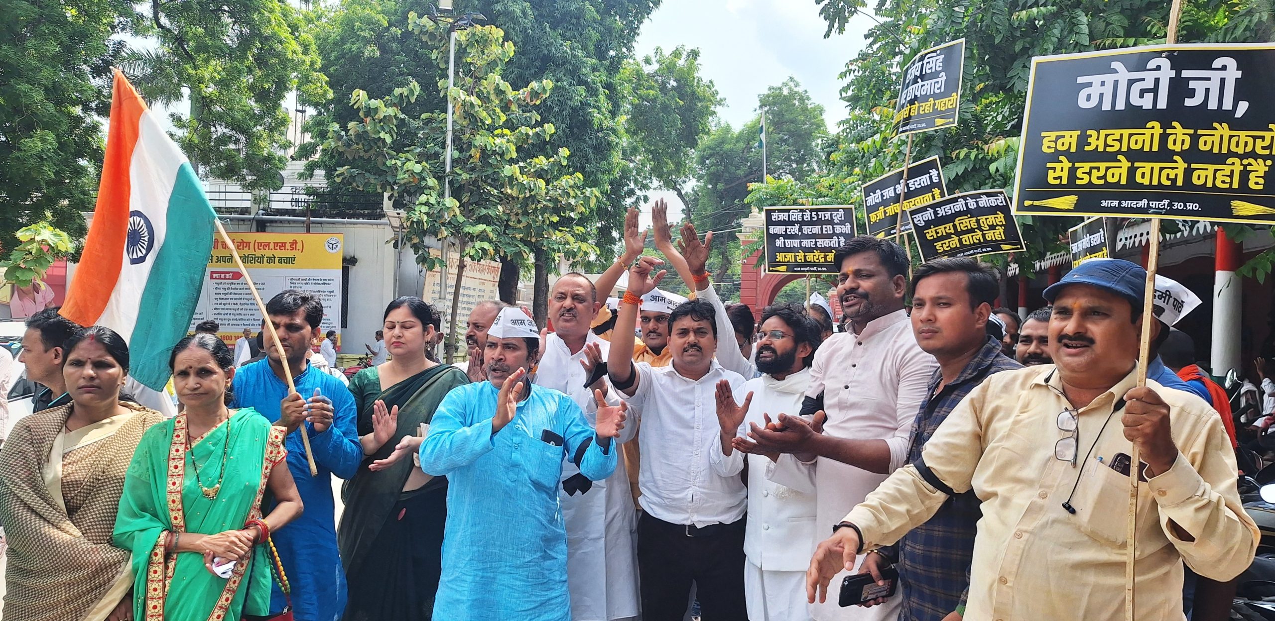 सांसद संजय सिंह के घर ईडी के छापेमारी के विरोध में आप किया प्रदर्शन, फूंका पुतला