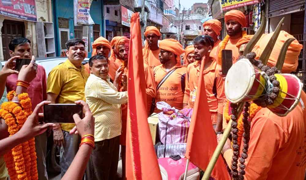 जौनपुर धारा, मुंगराबादशाहपुर। नगर के दर्जियान मोहल्ले में रविवार को बिहार के जगदीशपुर, भोजपुर से माँ वैष्णो देवी यात्रा पर विश्व मंगल कामना हेतु साइकिल यात्रा पर निकले भक्तों का नगरवासियों ने जोरदार स्वागत किया। गणेश प्रसाद कसेरा ने बताया कि हम सब 12 लोग हैं जो बिहार से जम्मू कश्मीर में माँ वैष्णो देवी का दर्शन कर यात्रा का समापन होगा। यह यात्रा विश्व मंगल कामना के साथ सनातन धर्म को मजबूत बनाने और बढ़ावा देना है। इस अवसर पर पूर्व सभासद पति सुरेशचंद्र सोनी (कल्लू), महेन्द्र कसेरा, रविशंकर सोनी, सुमित सोनी, अजित कुमार, रविकुमार, विक्की कुमार, विजय कुमार, हरिश्चंद्र, विद्यासागर, राजू केशरी, विशाल केशरी, कुंदन कुमार ठाकुर, गुड्डू शर्मा व पंकज कुमार मौजूद रहे।