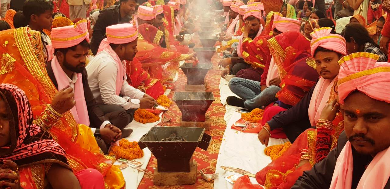 सामूहिक विवाह में वैवाहिक बंधन में बंधे सैकड़ो जोड़े