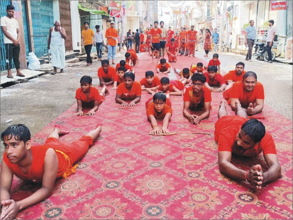 जौनपुर धारा,  जौनपुर। बोल बम कांवरिया संघ द्वारा आयोजित साष्टांग दंडवत (लेटते हुए) नाग पंचमी के दिन हनुमान घाट से गाजे बाजे के साथ एवं भगवान भेलेनाथ की सुंदर झांकियां तथा शिवभक्तों का विशाल हुजूम जुलूस के रूप में एकत्रित होकर चहारसू चौराहा से होते हुए हरलालका रोड, कोतवाली चौराहा,  नवाब युसुफ रोड से होते हुए बाबा जागेश्वरनाथ के मंदिर में भक्तों द्वारा जलाभिषेक किया गया। लेट कर जलाभिषेक के लिए जाते हुए भक्तों का स्थानीय लोगों ने पुष्प वर्षा कर तथा उनके ऊपर ठंडे पानी की बौछार कर उनका उत्साहवर्धन किया।
