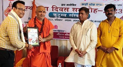जौनपुर धारा, जौनपुर। भारत विकास परिषद (कुटुंब संस्कार) के स्थापना दिवस कार्यक्रम के अवसर पर मुख्य अतिथि, अखिल भारतीय संत समिति के राष्ट्रीय महासचिव स्वामी जितेंद्रनन्द सरस्वती द्वारा दिव्य प्रेम सेवा मिशन के जिला संयोजक संजय सिंह को साहित्य के क्षेत्र में उत्कृष्ट प्रदर्शन के लिए सम्मानित किया गया। इस अवसर पर श्री सिंह के साहित्य रचना की सराहना की गई। कार्यक्रम में नीरज श्रीवास्तव, यूपी सिंह, पंकज सिंह, शरद साहू, शिव गुप्ता, अतुल जायसवाल, अवधेश गिरी समेत अन्य गणमान्य जन उपस्तिथ रहे।