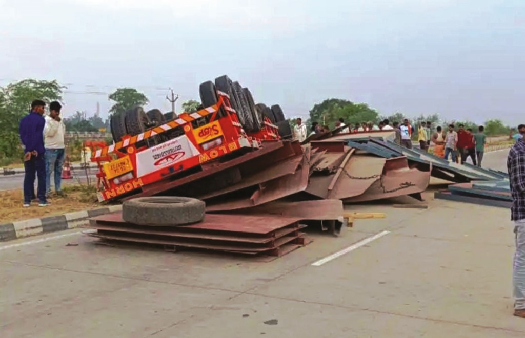 • ट्रेलर पलटने पर चालक को क्रेन से निकाला गया बाहर