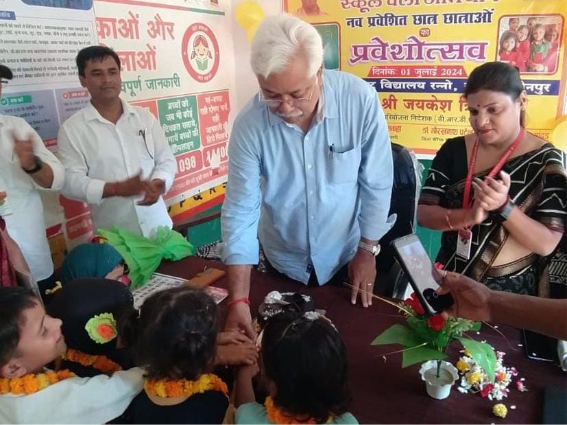 विकास खण्ड बक्शा के उच्च प्राथमिक विद्यालय रन्नो में भव्य प्रवेशोत्सव का आयोजन किया गया। कम्पोज़िट विद्यालय रन्नो में पहले दिन आने वाले बच्चों का टीका लगाकर स्वागत किया गया। बेसिक शिक्षा विभाग की ओर से एक जुलाई को ग्रीष्मावकाश के बाद विद्यालय में पठन पाठन की शुरुआत के साथ ही नव प्रवेशी छात्र और छात्राओं के स्वागत के लिए प्रवेशोत्सव की अनूठी पहल की गई है। प्रभारी प्रधानाध्यापक प्रीति श्रीवास्तव के शब्दों में जिलाधिकारी के निर्देश के क्रम में प्रवेशोत्सव के अवसर पर हमारे विद्यालय में परियोजना निदेशक श्री जयकेश त्रिपाठी सर का विजिट था। मुख्य अतिथि द्वारा दीप प्रज्ज्वलन एवं सरस्वती पूजन के पश्चात विद्यालय के नव प्रवेशी बच्चों का नामांकन तथा रोली चन्दन के साथ टीका लगाकर स्वागत किया गया तथा नामांकन कराने के बाद माला पहनाकर उनका स्वागत भी किया गया। मुख्य अतिथि महोदय ने बच्चों के साथ केक भी काटा साथ ही द्वारा उनके जीवन में शिक्षा के महत्व, उसका प्रभाव तथा सफलता की बातें भी बताई गई। इस अवसर पर वृक्षारोपण भी किया गया। प्रधानाध्यापिका व राज्य पुरस्कार सम्मानित शिक्षिका प्रीति श्रीवास्तव ने बताया कि गर्मी की छुट्टी के बाद विद्यालय पठन पाठन हेतु आज से खुल गया है। शासन के निर्देश पर विगत्ा दो दिन समर कैम्प का भी आयोजन किया गया था। इस अवसर पर विद्यालय के समस्त स्टाफ बच्चे एवं ग्रामवासी उपस्थित थे।