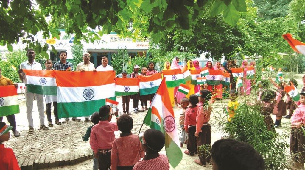 स्कूल के दीवारों व बोर्ड का तिरंगा कला से सजाया