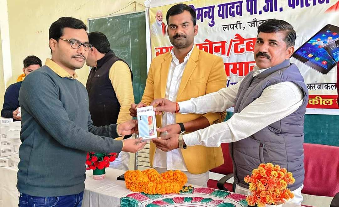 जौनपुर धारा, जौनपुर। सरायख्वाजा थाना क्षेत्र के लपरी स्थित अभिमन्यु यादव पीजी कॉलेज में स्नातक के छात्राओं को स्मार्टफोन का वितरण किया गया और उन्हें तकनीकी शिक्षा पर पढ़ाई करने का जोर दिया गया। कॉलेज परिसर में भाजपा नेता एवं ब्लाक प्रमुख प्रतिनिधि सुनील कुमार यादव मम्मन ने स्नातक के छात्र-छात्राओं को स्मार्टफोन वितरित किया। उन्होंने छात्र-छात्राओं को सम्बोधित करते हुए कहा कि तकनीकी युग है, सरकार के महत्वाकांक्षी योजना है कि बच्चों को तकनीकी शिक्षा की ओर जोर दिया जाए। स्मार्टफोन के जरिए वह सभी सामग्री पठन-पाठन के लिए ऑनलाइन देख सकते हैं। इसलिए किसी तरह की कोई लापरवाही ना करें और तकनीकी शिक्षा पर जो पढ़ाई के लिए जोर दे। स्मार्टफोन का जीवन में सदुपयोग करें। इस अवसर पर प्रबन्धक मुन्नेलाल यादव , प्राचार्य डॉ.वकील याद व कुशक सिंह, कमलेश कुमार, बृजनीश कुमार, सुमन यादव, अनीता विन्द, तारेश्वलता, अंकित यादव, बादल कुमार मौजूद रहे।