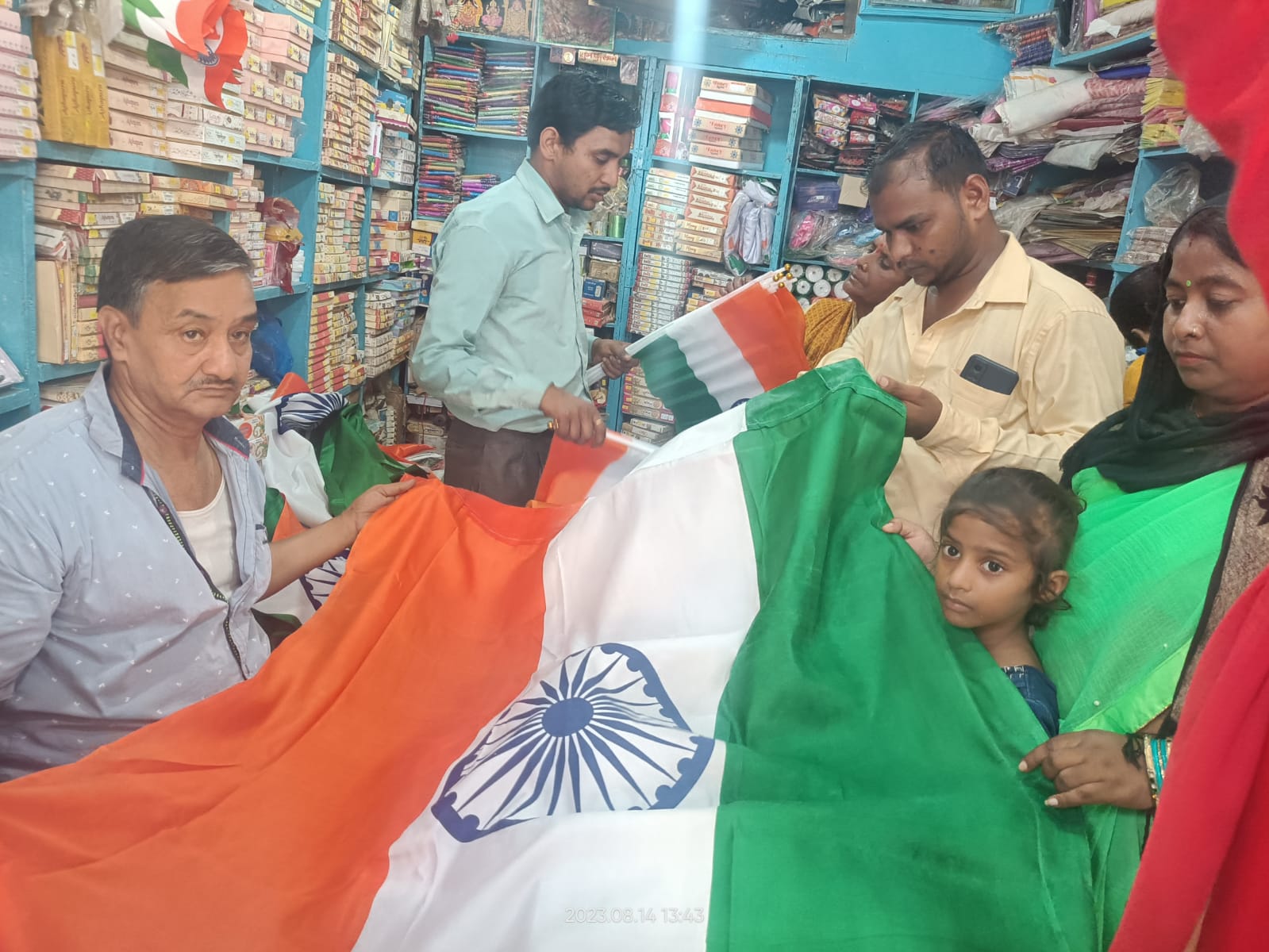 स्वतंत्रता दिवस के मद्देनजर बाजारों में तिरंगे की दुकानें सजी रहीं। इन दुकानों पर ग्राहकों की आवाजाही पूरे दिन लगी रही। कोतवाली चौराहा, चहारसू चौराहा, ओलंदगंज के आस-पास कई दुकानें खरीददारों से पटी रहीं। जहाँ छोटे बड़े आकार के झण्डे, तिरंगे की टोपी, बाइक और चार पहिया वाहनों पर लगाने के लिए विशेष साकेट वाले झण्डे, बैलून, स्टीकर, बैज, गले पहने के लिए तिरंगे की माला, तिरंगे की टी-शर्ट सहित तमाम सामग्री की खूब बिक्री हुई। दुकानदार ने बताया कि कपड़े के झण्डे 50 रुपए से लेकर 200 रूपए तक, रिस्ट बैंड पांच से दस रुपए पीस, प्लास्टिक की टोपी पांच रुपए से बीस रुपए तक हैं। ग्राहक अपनी पसंद के अनुसार खरीददारी कर रहे हैं। आपको बताते चलें कि तिरंगे की खरीददारी डाकघर की शाखाओं पर भी की जा रही है। स्वतन्त्रता दिवस पर तिरंगे की बिक्री के मद्देनजर रविवार को भी डाकघर शाखाओं को खुला रखने के लिए निर्देशित किया गया था।