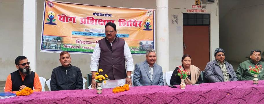 जौनपुर धारा,जौनपुर। तिलकधारी स्नातकोत्तर महाविद्यालय के बीएड विभाग के तत्वाधान में पांच दिवसीय शिविर के चौथे दिन मुख्य अतिथि वीर बहादुर सिंह पूर्वांचल विद्यालय शिक्षक संघ के महामंत्री डॉ.शैलेंद्र सिंह ने शिवरार्थियों को संबोधित करते हुए कहा कि योग का हमारे जीवन में बहुत ही अत्यधिक महत्व है। यह एक व्यापक प्रणाली है, जो शारीरिक, मानसिक और आध्यात्मिक रूप से फायदेमंद है। योग की नियमित अभ्यास से हम अपना समग्र कल्याण कर सकते हैं। योग एक भारती आध्यात्मिक और शारीरिक अभ्यास या अनुशासन है जिसकी उत्पत्ति काल प्रागैतिहासिक काल से हुई है। योग केवल स्वास्थ्य और तंदुरस्ती को बेहतर बनाने के मुख्य उद्देश्य से किया जाने वाला व्यायाम ही नहीं है, बल्कि यह आत्म-साक्षात्कार के बारे में भी है। डॉ.सिंह ने शिवरार्थियों से सुदर्शन क्रिया का अभ्यास प्रतिदिन करें। डीन आफ फैकेल्टी शिक्षक प्रशिक्षण विभाग पूर्वांचल विश्वविद्यालय सोशल अजय कुमार दुबे ने अपने संबोधन में कहा कि मन एवं आत्मा के सर्वांगीण विकास के लिए योगाभ्यास बहुत ही जरूरी है।योग प्रशिक्षक जितेंद्र प्रताप ने योगाभ्यास के तरीकों को बताया तथा करके दिखाया भी। आभार ज्ञापन विभागाध्यक्ष प्रो.सुधांशु सिंहा ने किया। इस अवसर पर प्रोफेसर श्रद्धा सिंह, डॉ.अरविन्द कुमार सिंह, डॉ.सीमांत राय, डॉ.वैभव सिंह ने भी अपने विचार व्यक्त किया। संचालन डॉक्टर प्रशांत कुमार पांडे ने किया।
