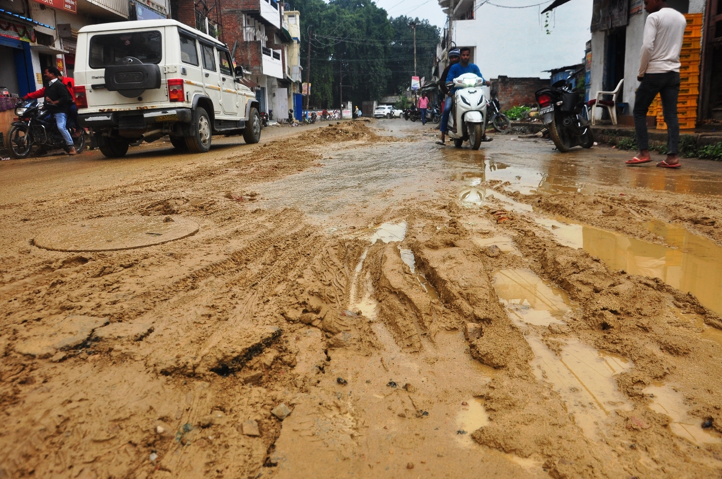 • कीचड़ में तब्दील हुआ सड़क, आवागमन में उठानी पड़ी दिक्कतें