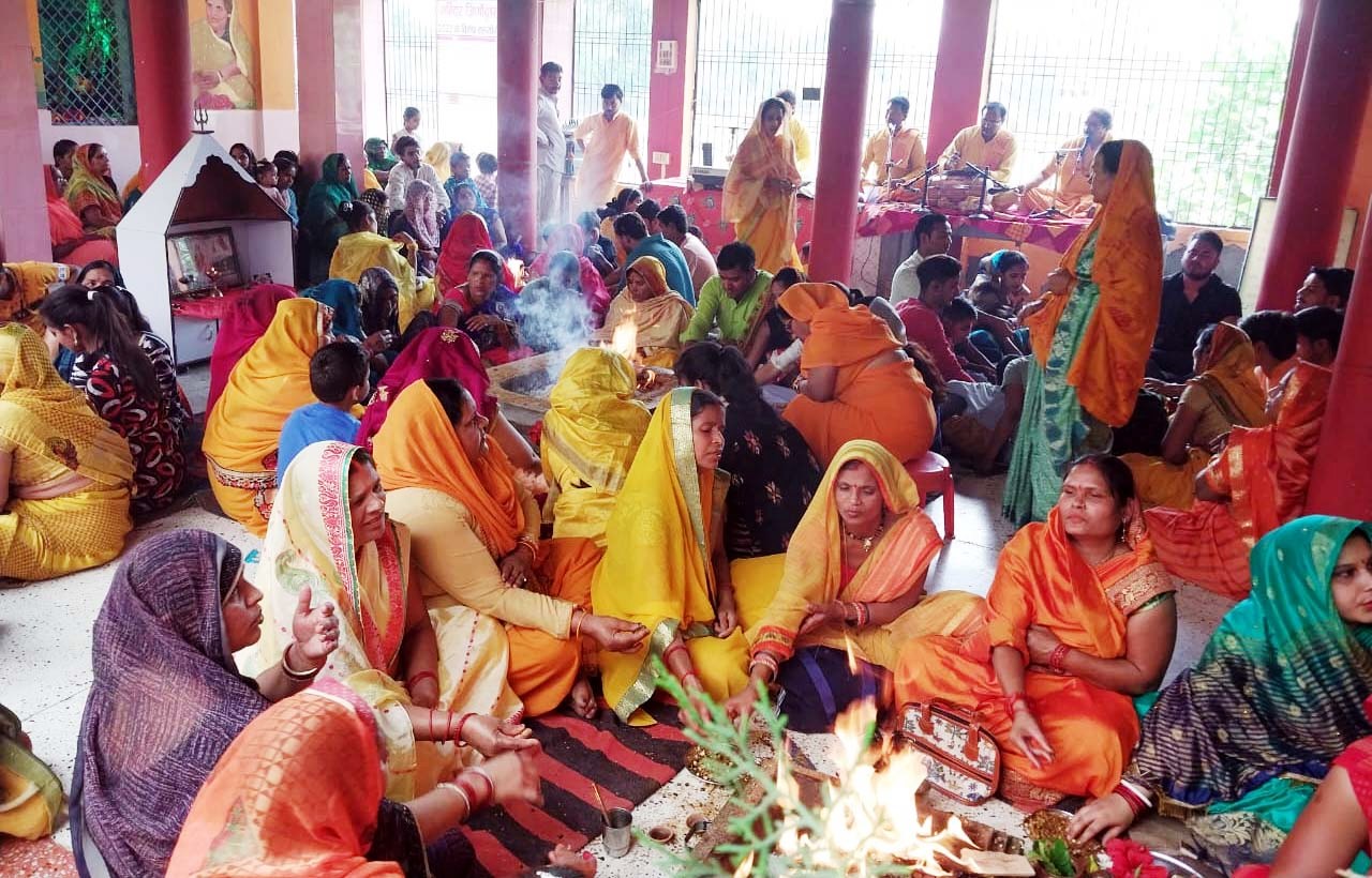 - विधि-विधान व वैदिक मंत्रोच्चारण के साथ नौ कन्याओं का किया गया पांव पूजा