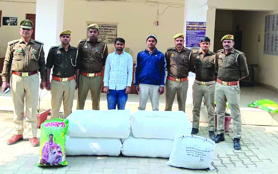 खुटहन। खुटहन वाया मोहदीसराय मार्ग के सौरइया गांव से पुलिस ने मंगलवार की रात बाइक सवार दो गांजा तस्करों को गिरफ्तार कर उनके पास से 1.32क्विंटल गांजा बरामद किया है। पुलिस के मुताबिक बरामद गांजे का बाजार मूल्य 35 लाख रूपए से अधिक है। आवश्यक लिखापढ़ी के बाद दोनों आरोपितों को चलान न्यायालय भेज दिया गया। बरामद बाइक के पंजीयन का कागज न दिखाने पर बाइक को सीज कर दिया गया। थानाध्यक्ष रामाश्रय राय ने बताया कि हमराहियों संग आधी रात को उक्त मार्ग पर संदिग्धों की चेकिंग कर रहे थे, तभी खुटहन की तरफ से एक बाइक पर प्लास्टिक की बोरी लादकर आते दो युवक दिखे। पुलिस टीम को देखकर वे बाइक पीछे मोड़ने लगे। शक होने पर पुलिस के जवानों ने उसे घेरकर पकड़ लिया। बोरी की तलाशी ली गई तो उसमें गांजा भरा था। दोनों को हिरासत में ले लिया गया। जब उनसे कड़ाई से पूछताछ की गई तो बताया कि पांच बोरी गांजा वह अपने घर के सामने टीन शेड में रखे भूसा में छुपाकर रखा है। मौके पर पहुंची पुलिस ने भूसे में रखा बोरियों में गांजा बरामद कर लिया। उनके पास से 15सौ रूपए और चार एंड्रॉयड फोन भी बरामद किया गया। गिरफ्तार तस्कर इसी थाना क्षेत्र के रामनगर गांव निवासी पिंटू निषाद और प्रमोद निषाद हैं। पिंटू निषाद दुष्कर्म और पक्सो का आरोपित भी है। उसके खिलाफ चार वर्ष पूर्व खुटहन थाने में ही मुकदमा दर्ज है। गिरफ्तार करने वाली टीम में थानाध्यक्ष रामाश्रय राय, उप निरीक्षक प्रेमशंकर सिंह, रामजन्म प्रसाद, कांस्टेबल कुलदीप गोस्वामी, सोनू यादव, सोनू निषाद, अजय यादव, आनंद कुमार, रणविजय यादव, संजय जायसवाल, अकास निषाद व महिला कांस्टेबल आशा गुप्ता सामिल रहीं।