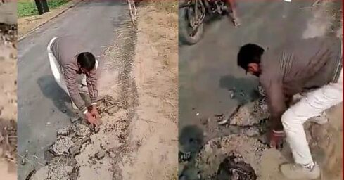Deoria में तीन दिन पहले ही बनी सड़क चटाई की तरह उखड़ रही,