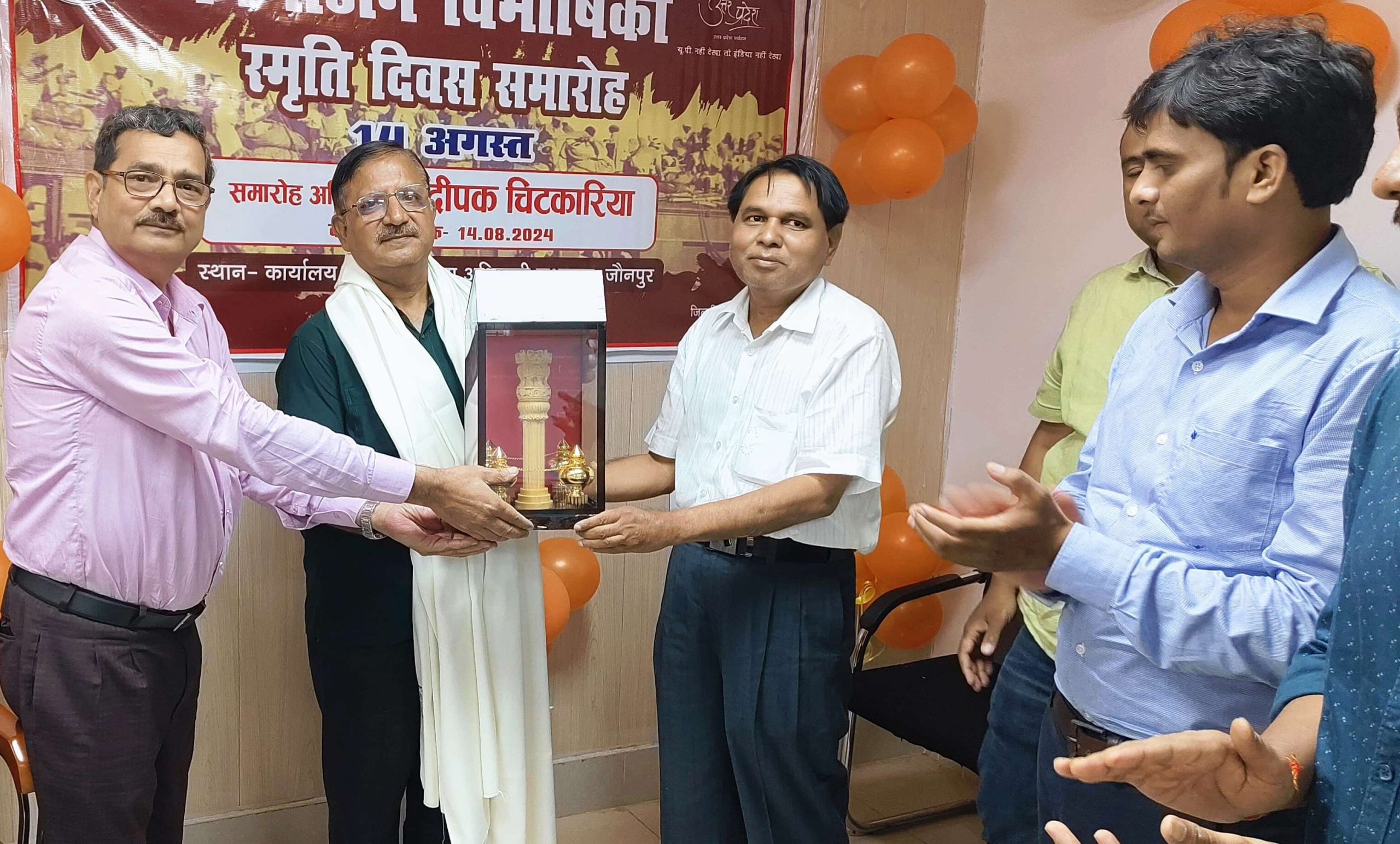 मुख्य अतिथि के रूप में विभाजन विभीषिका से प्रभावित दीपक चिटकारिया को अपर मुख्य चिकित्सा अधिकारी डॉ.नरेन्द्र सिंह, डॉ.राजीव कुमार द्वारा सम्मानित किया गया। इस अवसर पर दीपक चिटकारिया ने बताया कि देश के विभाजन के वक्त उनके परिवार पर दिल दहला देने वाले संकट आया था। उस समय उनका परिवार डेरा स्माईल खान नाम के जगह पर रहता था। जो इस समय पाकिस्तान में है। इसके आगे उन्होने बताया कि विभाजन के पश्चात उनका परिवार जौनपुर में आकर रहने लगा और अपनी मेहनत और परिश्रम के बल पर अपना घर बनाया। 14अगस्त को भारत सरकार द्वारा विगत 03 वर्षों से विभाजन विभीषिका स्मृति दिवस के रूप में मनाये जाने का निर्णय लिया गया है। इसी क्रम में चिकित्सा स्वास्थ्य एवं परिवार कल्याण विभाग जनपद जौनपुर द्वारा उक्त समारोह का आयोजन कर श्री दीपक चिटकारिया जी को सम्मानित किया गया। इस अवसर पर समस्त स्वास्थ्य विभाग के कर्मचारी और अधिकारीगण उपस्थित रहें और सभी के द्वारा यह संकल्प एवं शपथ लिया गया कि पूरी निष्ठा एवं लगन से भारत को विकसित एवं एक मजबूत राष्ट्र बनाने में पूर्ण योगदान करेंगें ताकि भविष्य में भारत वर्ष को ऐसी किसी भी विभीषिका का सामना न करना पड़े।