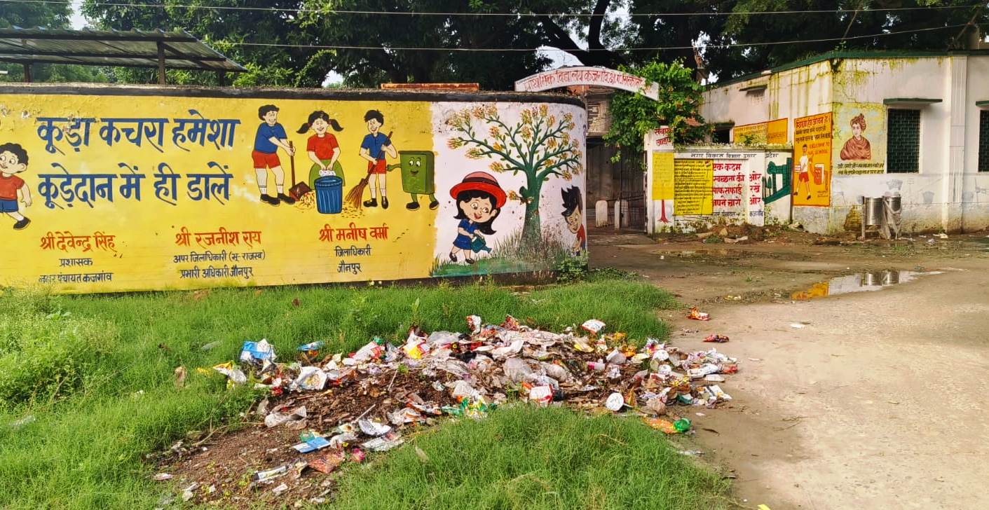 Jaunpur Dhara News : प्राथमिक विद्यालय के आस-पास लगा कचरों का अम्बार