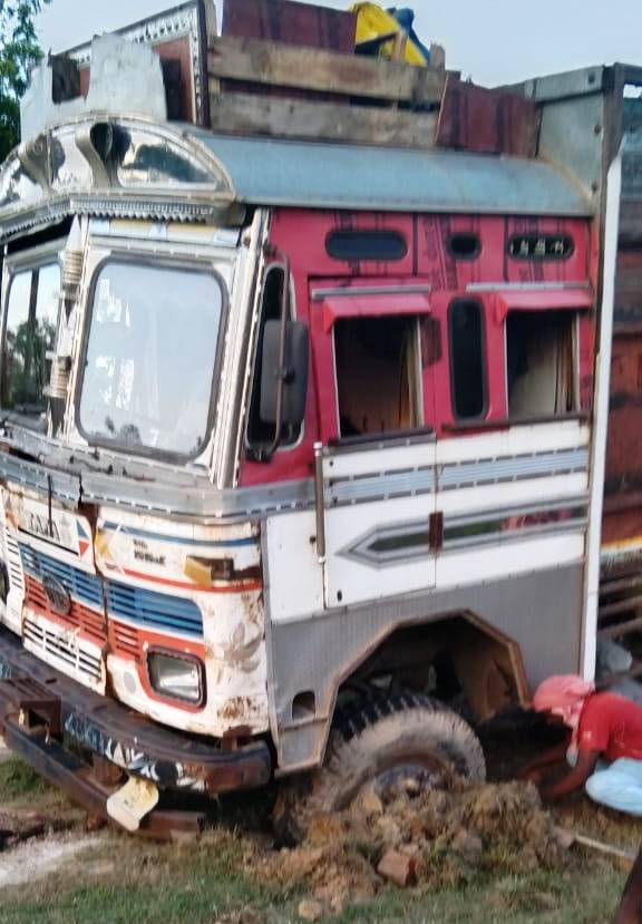 - आंगनबाड़ी कार्यालय पर खाद्यान्न लेकर जा रही ट्रैक फसी