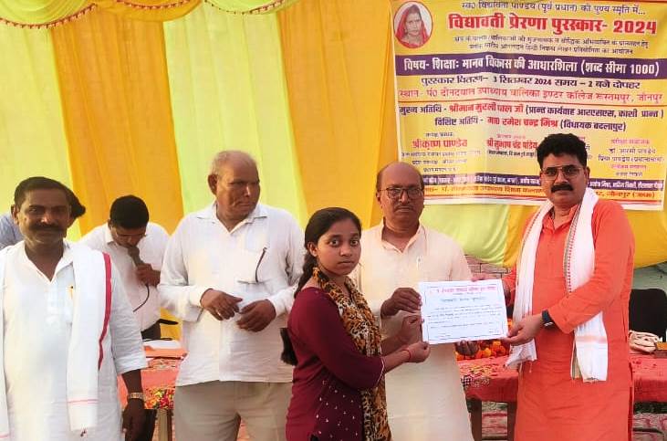 जौनपुर धारा,खुटहन। शिक्षा व्यक्ति के सर्वांगीण विकास में शक्ति पुंज का काम करती है। शिक्षा से अपेक्षित संस्कार व विचार पैदा होते हैं। आज सामाजिक विमर्श के नाम पर तमाम तरह के भ्रम रचे जा रहे हैं। इस भ्रम को शिक्षा से ही दूर किया जा सकता है। उक्त बातें बतौर मुख्य अतिथि आरएसएस काशी प्रांत के प्रांत कार्यवाह मुरली पाल ने क्षेत्र के पं.दीनदयाल उपाध्याय बालिका इंटर कॉलेज रुस्तमपुर में मेधावियों को विद्यावती प्रेरणा पुरस्कार प्रदान करने के दौरान कहीं। गौरतलब है कि क्षेत्र रुस्तमपुर की पूर्व प्रधान विद्यावती पांडेय की स्मृति में शिक्षा मानव विकास की आधारशिला विषय पर ब्लॉक स्तरीय निबंध लेखन प्रतियोगिता का आयोजन किया गया था। मुख्यअतिथि मुरली पाल ने बच्चों को प्रोत्साहित करते हुए कहा कि लेखन के लिए प्रमाणिक जानकारी और भाषा पर पकड़ आवश्यक है। यह दोनों चीजें अध्ययन से ही प्राप्त होती हैं।कहा कि दुनिया से तालमेल मिलाने के लिए हमें आधुनिक साधनों का इस्तेमाल करना चाहिए लेकिन साधना से नहीं हटना चाहिए न ही अपनी परंपराओं से विमुख होना चाहिए। सनातन संस्कृति दुनिया की सबसे प्राचीन और समृद्ध संस्कृति है। जिसे जानना और अपनाना आज की पीढ़ी के लिए नितांत आवश्यक है। शिक्षा की बदौलत ही प्रचानी भारत विश्व गुरु था। आज फिर से भारत विश्व गुरु बनने की राह पर खड़ा है। उन्होंने कहा कि सभी बच्चों को अपने सपनों को साकार करने लिए कठिन परिश्रम, कठोर संयम और दृढ़ अनुशासन धारण करना चाहिए। सकारात्मक सोच और मजूबत संकल्प से व्यक्ति नित नए सोपान प्राप्त करता है। बतौर विशिष्ट अतिथि बदलापुर के विधायक रमेशचंद्र मिश्र ने कहा कि बच्चों को उनकी प्रतिभा के अनुसार आगे बढ़ने का अवसर प्रदान करना अभिभावकों का कर्तव्य है। बच्चों पर अनावश्यक रूप से अपनी अपेक्षाओं का बोझ नहीं थोपना चाहिए। उन्होंने बच्चों से आह्वान किया कि उन्हें अच्छे समाजसेवक और राजनेता बनने के विषय में भी सोचना चाहिए। विधायक रमेशचंद्र मिश्र ने कहा कि आज समाज में तरह-तरह के भेदभाव व सामाजिक बुराइयां फैलती जा रही हैं जिसे शिक्षा के ही माध्यम से दूर किया जा सकता है। कहा कि समाज की एकता और सामाजिक सद्भाव के लिए अच्छी शिक्षा और संस्कार बेहद आवश्यक हैं। विद्यावती प्रेरणा पुरस्कार पाने वाले होनहारों में वरिष्ठ वर्ग में नेशनल इंटर कॉलेज के कक्षा बारहवीं की छात्रा दीक्षा विश्वकर्मा को प्रथम, श्रमजीवी बालिका विद्यालय गायत्रीनगर के नौवीं की छात्रा अनुष्का पाल को द्वितीय व सेंट जोवियर्स वर्ल्ड स्कूल के नौवीं कक्षा की छात्रा समृद्धि सिंह को तृतीय स्थान प्राप्त हुआ। जबकि श्रमजीवी बालिका विद्यालय के कक्षा नौवीं की छात्रा अंशिका सिंह, नेशनल इंटर 