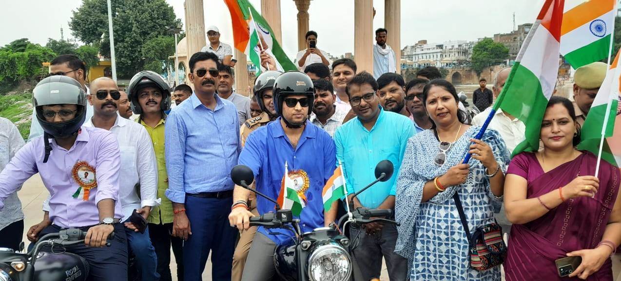 जिलाधिकारी, पुलिस अधीक्षक, मुख्य विकास अधिकारी, पी.डी.कृष्ण करुणाकर पाण्डेय, बेसिक शिक्षा अधिकारी डा.गोरखनाथ पटेल सहित अन्य अधिकारियों व जनपद के अध्यापक और अध्यापिकाओं ने मोटर साइकिल/स्कूटी पर तिरंगा लगाकर हेलमेट के साथ यातायात नियमों का पालन करते हुए बाइक रैली निकाली गयी। रैली के दौरान हिन्दुस्तान जिन्दाबाद, इंकलाब जिन्दाबाद और भारत माता की जय का जमकर जयकारा लगा। इस दौरान जिलाधिकारी ने कहा कि प्रधानमंत्री और मुख्यमंत्री के आहवाहन पर राष्ट्रीय पर्व जनपद में पूरे हर्षोल्लास के साथ मनाया जा रहा है। उन्होंने कहा कि हर घर तिरगां एक महत्वपूर्ण अभियान है, सभी लोगो को राष्ट्रभक्ति से जोड़ने का अच्छा माध्यम है। इस अवसर पर अपर जिलाधिकरी वित्त एवं राजस्व राम अक्षयवार चौहान, नगर मजिस्ट्रेट इन्द्र नन्दन सिंह, अपर पुलिस अधीक्षक बृजेश कुमार, शैलेन्द्र सिंह, जिला सूचना अधिकारी मनोकामना राय, यातायात निरीक्षक जी.डी.शुक्ला, अधिशासी अधिकारी नगर पलिका परिषद पवन कुमार सहित अन्य अधिकारीगण तथा शिक्षकगण उपस्थित रहे।