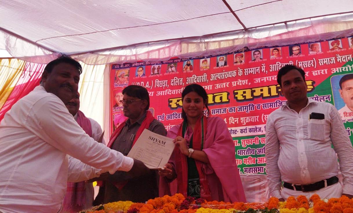 जौनपुर धारा, केराकत। स्थानीय क्षेत्र के बलुआ विजयीपुर के बनवासी बस्ती में शुक्रवार को भारतीय आदवासी महासभा द्वारा स्वागत समारोह एवं आदिवासी (मुसहर) जागृति और सामाजिक न्याय सम्मेलन डॉ.ए.के.यादव की अध्यक्षता में आयोजित की गई। कार्यक्रम में बतौर मुख्य अतिथि पहुंची मछलीशहर सांसद प्रिया सरोज ने कहा कि आपने ना नेता चुना है और ना सांसद चुना है आपने बेटी और बहन चुना है। बेटी व बहन हमेशा आदिवासी समाज का सम्मान बढ़ाने व बचाने का कार्य करेगी। मैने महसूस किया है कि हमारे समाज के लोग आज भी आगे नहीं बढ़ पाए है। संविधान से जो हक अधिकार हम सभी को मिला है उसे समझने की जरूरत है। अगर आप अपने हक अधिकार को समझ पाएंगे तो किसी नेता के यहां जाने की जरूरत नहीं पड़ेगी। हमारे देश में जातिवाद बहुत ज्यादा है धर्म के नाम पर लोग भेद भाव करते है। जिस्ा दिन से आप उन्हे रोक देंगे उस दिन से किसी की हिम्मत नहीं होगी, कि आपके हक अधिकार पर डकैती डाल सके। उन्होंने कहा कि जिस तरह से आप अपने लड़के को मौका देते है उसी तरह से आप अपने लड़की को भी मौका देंगे तभी देश व समाज का विकास हो सकता है। छीने हुए अधिकार कभी आपको भीख में नहीं मिलते है व अधिकार छीन कर हासिल करना पड़ता है शिक्षा हर बंद दरवाजे की चाभी है। जब बच्चे पढ़ लिख लेंगे तब अपने हक की लड़ाई खुद लड़ सकेंगे। विशिष्ठ अतिथि क्षेत्रीय विधायक तूफानी सरोज ने कहा कि शिक्षा अविष्कार की जननी है और शिक्षा वह शेरनी का दूध है जो जितना पिएगा उतना दहाड़ेगा। इसीलिए शिक्षा पर हम सभी विशेष ध्यान देने की जरूरत है। क्यों आज अनुसूचित जाति के लोग आदिवासी एससी-एसटी के लोग शिक्षा से क्यों वंचित है। क्योंकि उनसे शिक्षा को छीना गया था। मंचासीन अध्यक्ष भारतीय आदिवंशी महासभा विजय कुमार आदिवंशी, विधानसभा अध्यक्ष नीरज पहलवान, सुरेश यादव, ग्राम प्रधान रामजीत समेत भारी संख्या में लोग मौजूद रहे।