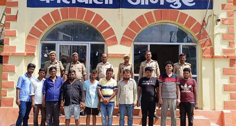 जौनपुर धारा,जौनपुर। शहर कोतवाली पुलिस ने राज कालेज के मैदान से मंगलवार को दस जुआरियों को गिरफ्तार कर लिया। इनके पास से एक लाख साढ़े नौ हजार रुपये, पांच बाइक व आठ मोबाइल फोन बरामद हुए। कोतवाली प्रभारी निरीक्षक मिथिलेश कुमार मिश्र को मुखबिर ने सूचना दी कि शहाबुद्दीनपुर स्थित राज कालेज मैदान के पास लगभग एक दर्जन की संख्या में लोग बड़े पैमाने पर जुआ खेल रहे हैं। उन्होंने राज कालेज पुलिस चौकी प्रभारी राम प्रकाश यादव व भंडारी पुलिस चौकी प्रभारी ओम प्रकाश पांडेय सहित बड़ी संख्या में जवानों को लेकर घेराबंदी कर जुआ खेल रहे 10 व्यक्तियों को घर दबोचा। फड़ से एक लाख जबकि जामा तलाशी में 9500 रुपये मिले। मौके पर पांच बाइक व विभिन्न कंपनियों के आठ मोबाइल बरामद हुए। गिरफ्तार हुए आरोपितों में कोतवाली के बेगमगंज निवासी अंकित जायसवाल, मनीष सोनकर, सोनू सोनकर, मुफ्ती मोहल्ला निवासी मोहम्मद इरफानुल रहमान, सुक्खीपुर निवासी विजय सोनकर, दाउदपुर निवासी नंदलाल प्रजापति, गौराबादशाहपुर के धर्मापुर निवासी अच्छेलाल निषाद, लाइन बाजार के कलीचाबाद निवासी सुभाष यादव, सरायख्वाजा के कुहियां निवासी अंबुज कुमार यादव व सिकरारा के शेरवां निवासी मनीष कुमार सिंह हैं। जुआ एक्ट के तहत मुकदमा दर्ज कर पुलिस ने आरोपितों का चालान कर दिया। गिरफ्तारी व बरामदगी करने वाली पुलिस टीम में हेड कांस्टेबल भरत सिंह यादव, कांंस्टेबल शुभम कुमार सिंह, शिवेंद्र यादव, आनंद निषाद, प्रिंस मौर्य, योगेश कुमार व संजय यादव रहे।