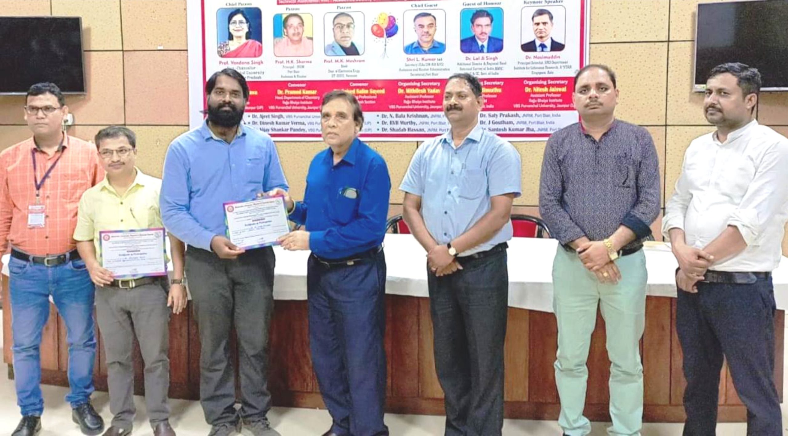 जौनपुर धारा, जौनपुर। रसायन विज्ञान विभाग, रज्जू भैया संस्थान, वीर बहादुर सिंह पूर्वांचल विश्वविद्यालय उत्तर प्रदेश और जवाहरलाल नेहरू राजकीय महाविद्यालय पोर्ट ब्लेयर के द्वारा संयुक्त रूप से आयोजित इलेक्ट्रॉनिक्स, कंप्यूटर, भौतिक और रासायनिक विज्ञान विषयक तीन दिवसीय अंतर्राष्ट्रीय सम्मेलन संपन्न हुआ। ऑफ़ लाइन प्रस्तुतकर्ताओं के लिए प्रमाण पत्र वितरण समारोह जेएनआरएम, व्याख्यान गैलरी में आयोजित किया गया। डॉ.एच.के. शर्मा, प्राचार्य जेएनआरएम ने को पेपर प्रस्तुतकर्ताओं, संकाय प्रतिभागियों और आयोजन समिति को प्रस्तुति प्रमाण पत्र वितरित किए। समापन के अवसर पर रज्जू भैया संस्थान, पूर्वांचल विश्वविद्यालय के निदेशक प्रो.प्रमोद कुमार यादव ने सफल सम्मेलन के लिए आयोजन समिति को बधाई दी। सम्मेलन के संयोजक डॉ.सैयद सलीम ने सम्मेलन की रिपोर्ट प्रस्तुत की। इससे पहले पूर्वांचल विश्वविद्यालय के रसायन विज्ञान विभाग के आयोजन सचिव डॉ.मिथिलेश यादव ने स्वागत भाषण दिया। पूर्वांचल विश्वविद्यालय के रसायन विज्ञान विभाग के प्रमुख डॉ.प्रमोद कुमार ने अपने भाषण में शैक्षणिक संस्थानों में अनुसंधान और विकास घटकों के भविष्य के दृष्टिकोण और महत्व पर अपने विचार व्यक्त किए। उन्होंने यह भी कहा कि सम्मेलन की सफल पूर्णता ने भविष्य की घटनाओं के लिए एक मजबूत नींव स्थापित की है, जिससे इलेक्ट्रॉनिक्स, कंप्यूटर, भौतिक और रासायनिक विज्ञान के क्षेत्रों में निरंतर प्रगति और नवाचार का वादा किया जा रहा है। कार्यक्रम का समापन सम्मेलन के आयोजन सचिव डॉ. कंडिमुथु द्वारा धन्यवाद ज्ञापन के साथ हुआ। पूरे कार्यक्रम का समन्वय जेएनआरएम की दीपिका द्वारा किया गया।