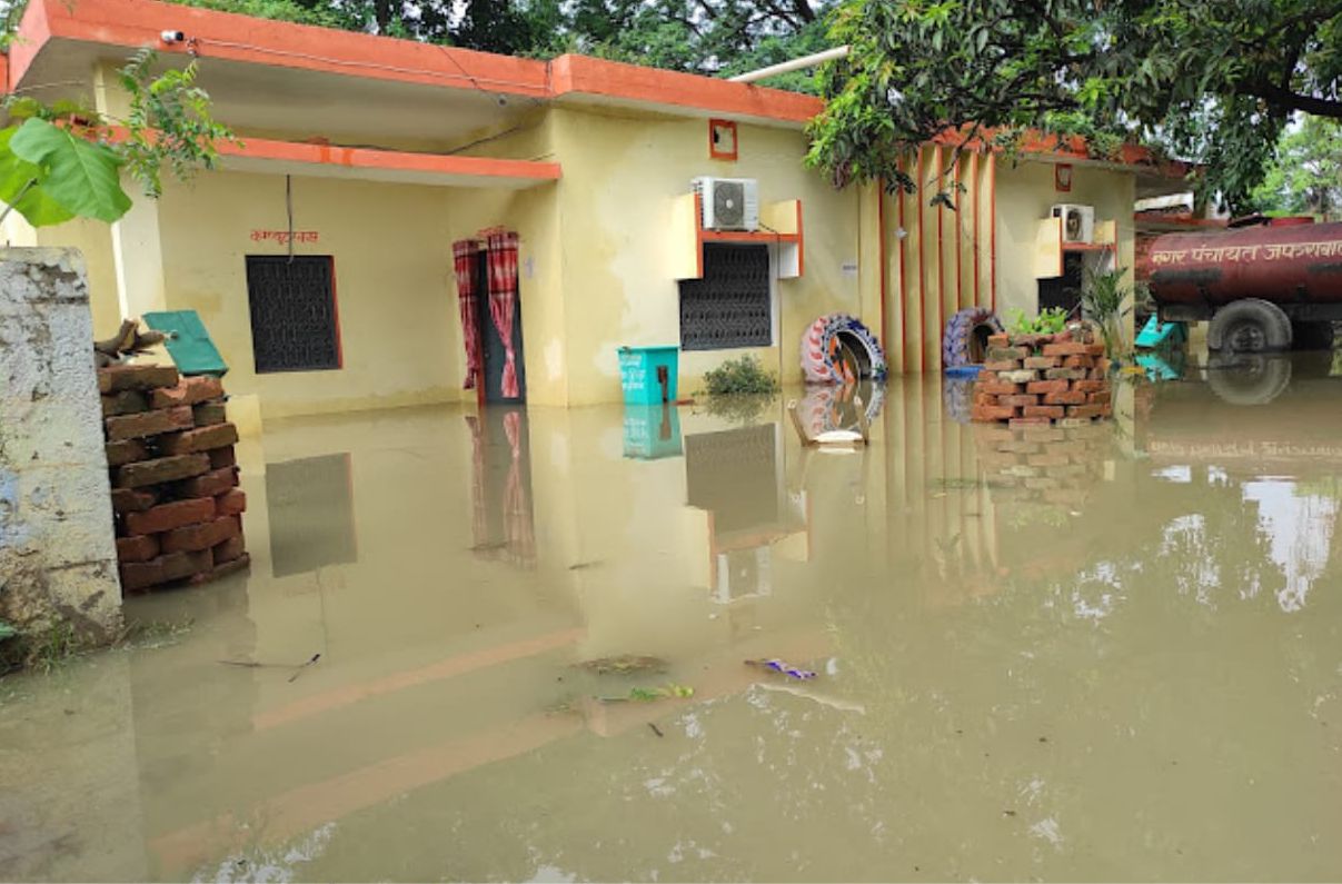 - नगर पंचायत कार्यालय के सभी कमरे में भर गया दो फीट तक पानी