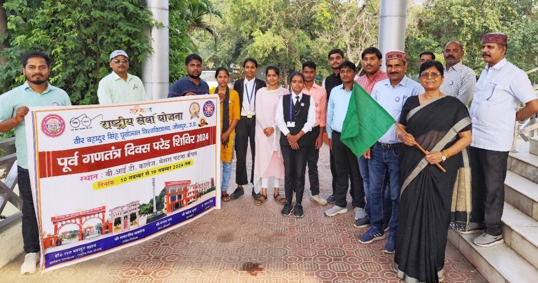 जौनपुर धारा, जौनपुर। वीरबहादुर सिंह पूर्वांचल विश्वविद्यालय के राष्ट्रीय सेवा योजना प्रकोष्ठ द्वारा युवा कार्यक्रम एवं खेल मंत्रालय, भारत सरकार के निर्देशन में विभिन्न महाविद्यालयों से चयनित पूर्व गणतंत्र दिवस परेड हेतु 08 स्वयंसेवक-स्वयंसेविकाओं का दल विश्वविद्यालय से रवाना हुआ। कुलपति प्रोफेसर वंदना सिंह ने विश्वविद्यालय के सरस्वती सदन में हरी झंडी दिखाकर रवाना किया। कुलपति ने कहा कि राष्ट्रीय सेवा योजना से जुड़कर निश्चित तौर पर समाज और राष्ट्र के प्रति विद्यार्थियों का जो दृष्टिकोण बनेगा वह जीवन पर्यंत रहेगा। उन्होंने विद्यार्थियों को बधाई दी। राष्ट्रीय सेवा योजना के समन्वयक डॉ.राज बहादुर यादव ने बताया कि यह सभी स्वयंसेवक 10से 19नवंबर 2024 तक बी.आई.टी.पटना में आयोजित प्रशिक्षण शिविर में प्रतिभाग करेंग। विश्वविद्यालय के वरिष्ठ कार्यक्रम अधिकारी डॉ.शशिकांत यादव, शिया कॉलेज के कार्यक्रम अधिकारी डॉ.अवधेश मौर्य, डॉ.तेज प्रताप सिंह, कार्यक्रम अधिकारी कार्यालय मंत्री, डॉ.नीरज कुमार सिंह, डॉ.सुनील कुमार, डॉ.दिग्विजय सिंह राठौर इस अवसर पर उपस्थित रहे।